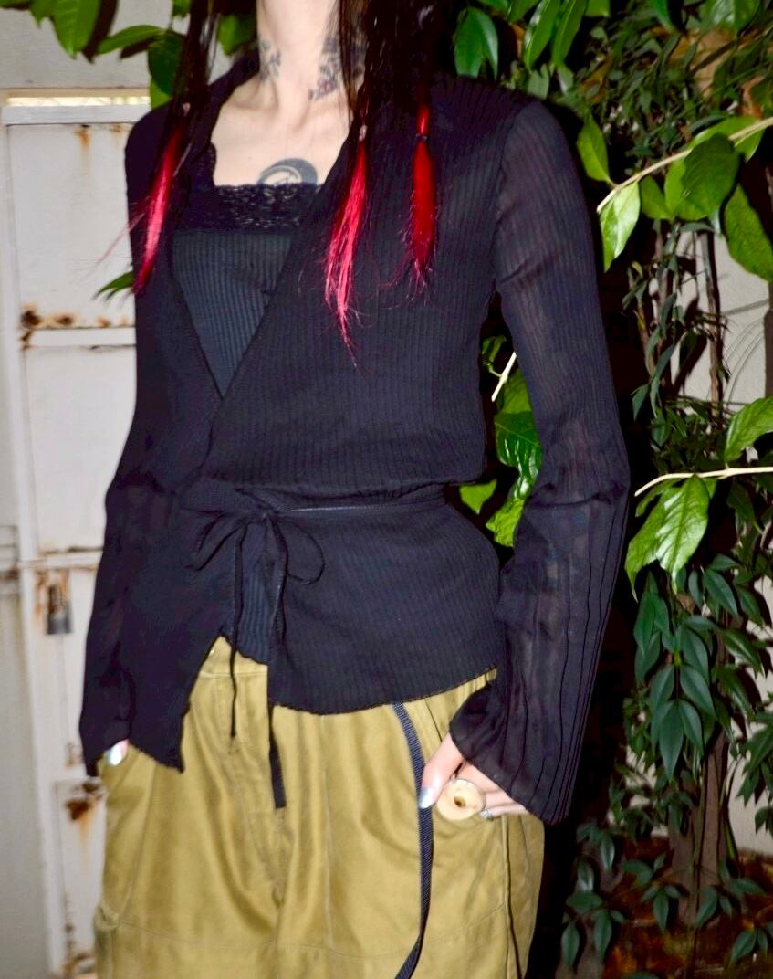 紐が長めなので腰にぐるっと回して結ぶと丁度良い長さになります。