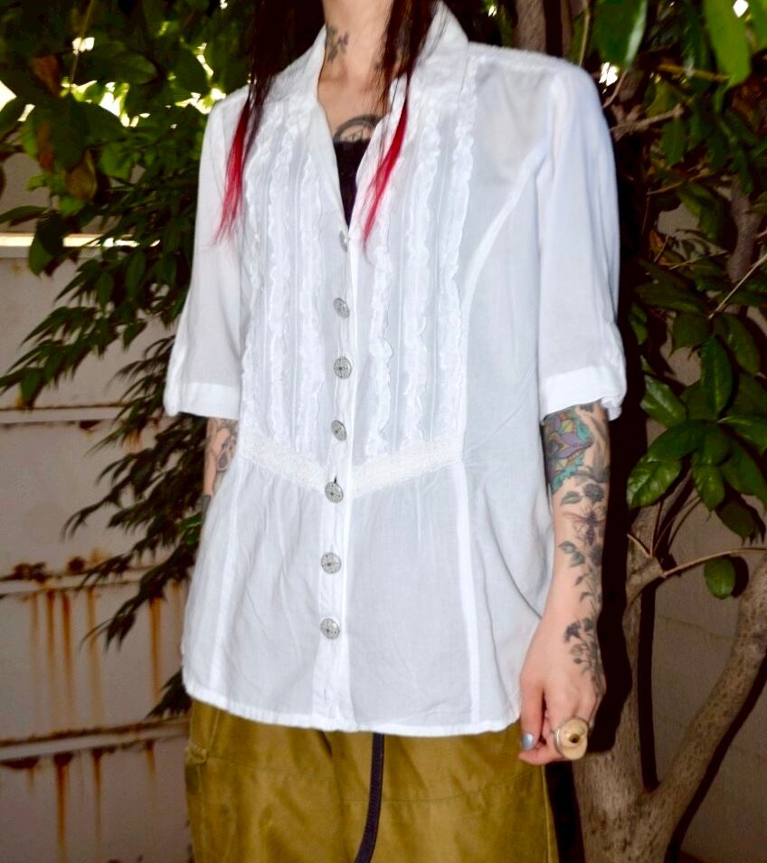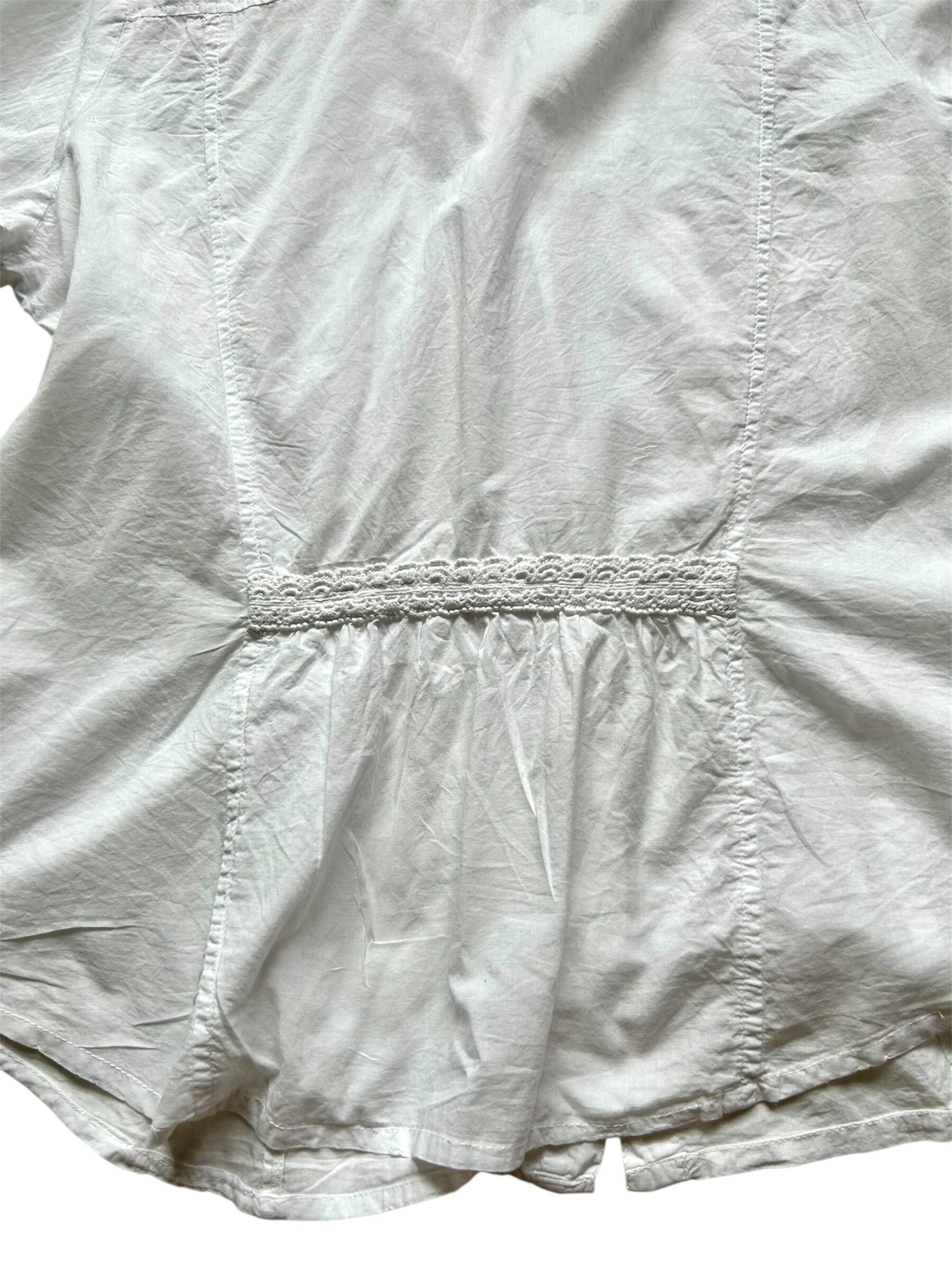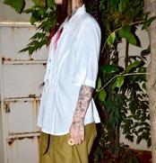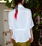 袖口のロールアップした部分や、ボタンが首元まで無いデザインはワークっぽさもあり、可愛いだけではない所もポイントです◎