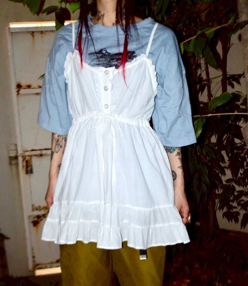 胸下の紐で絞れば全体のバランスが良くなります◎