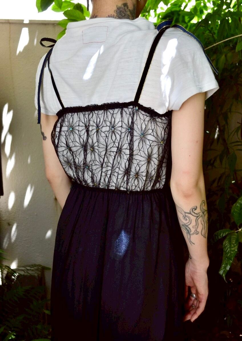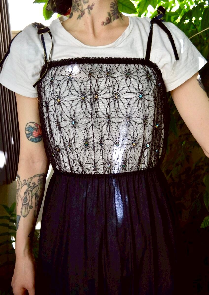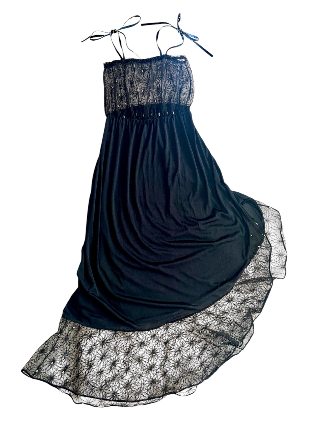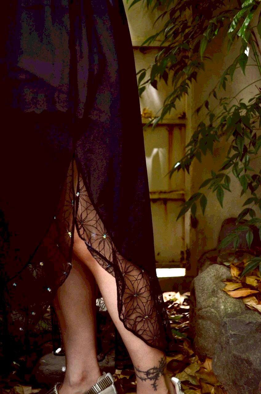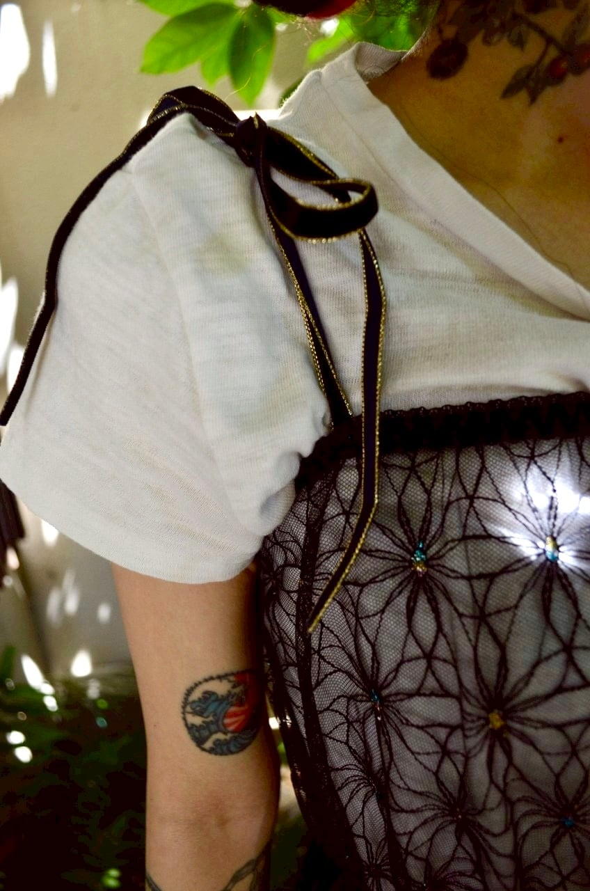シースルー素材の花柄の真ん中部分にキラキラなラメ糸を使われています。