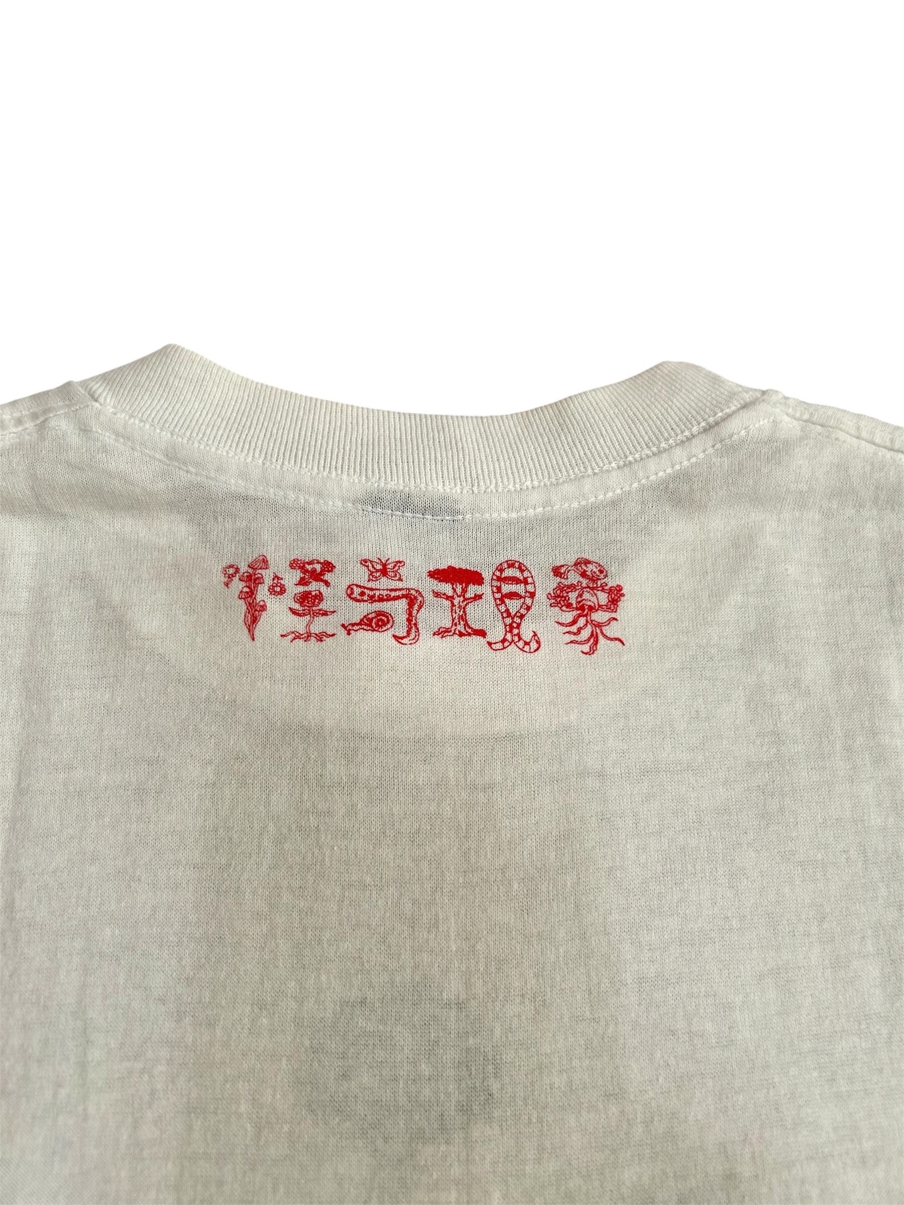古着のTシャツを使い、元々のプリントを生かしながらホラーの雰囲気にリメイクしました。