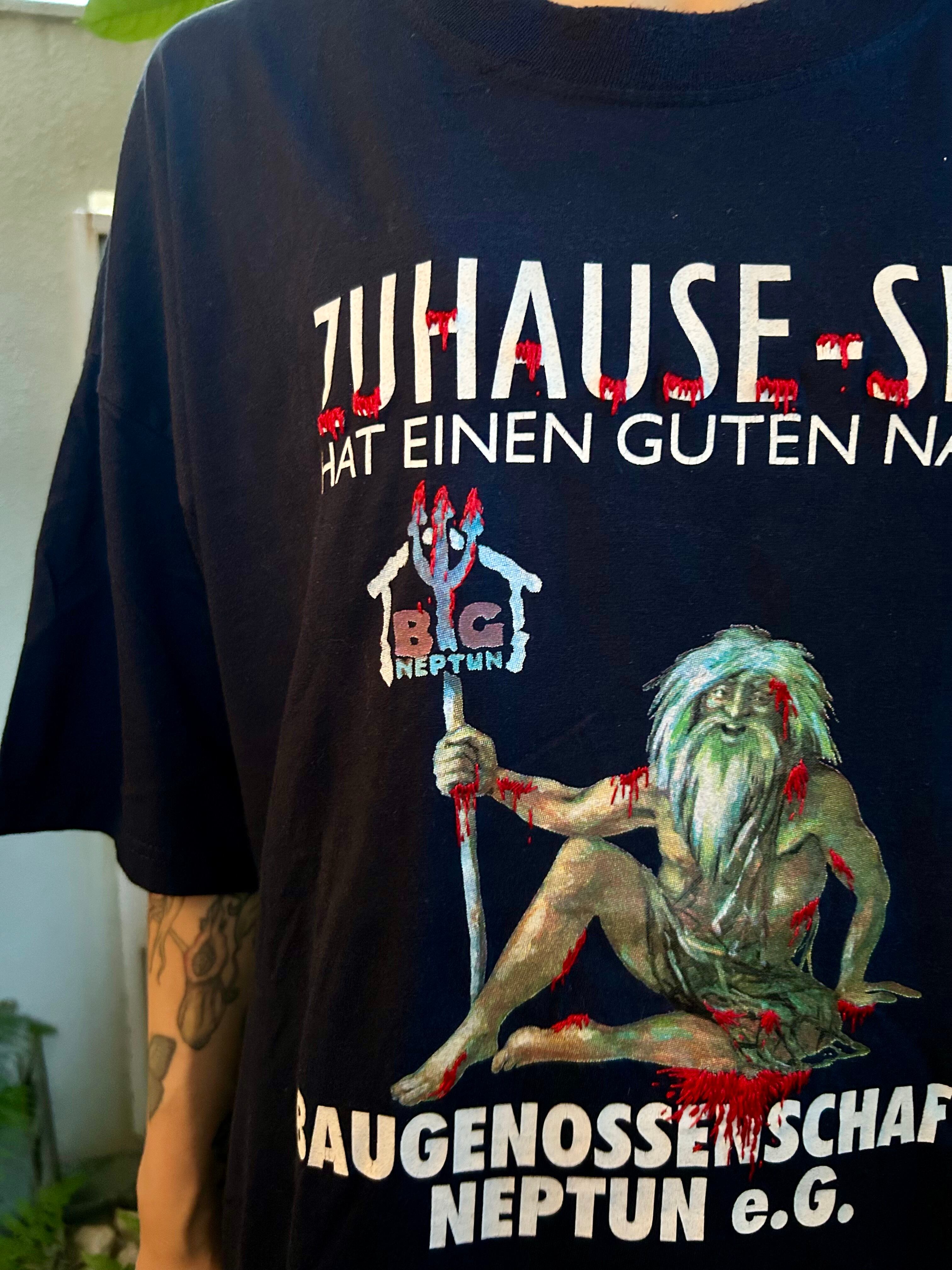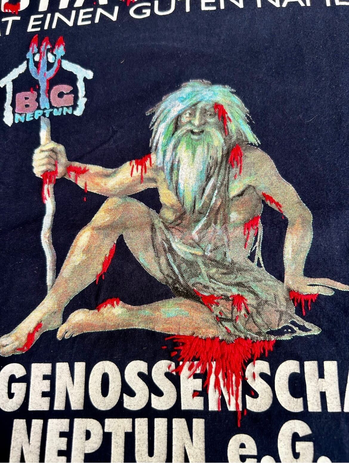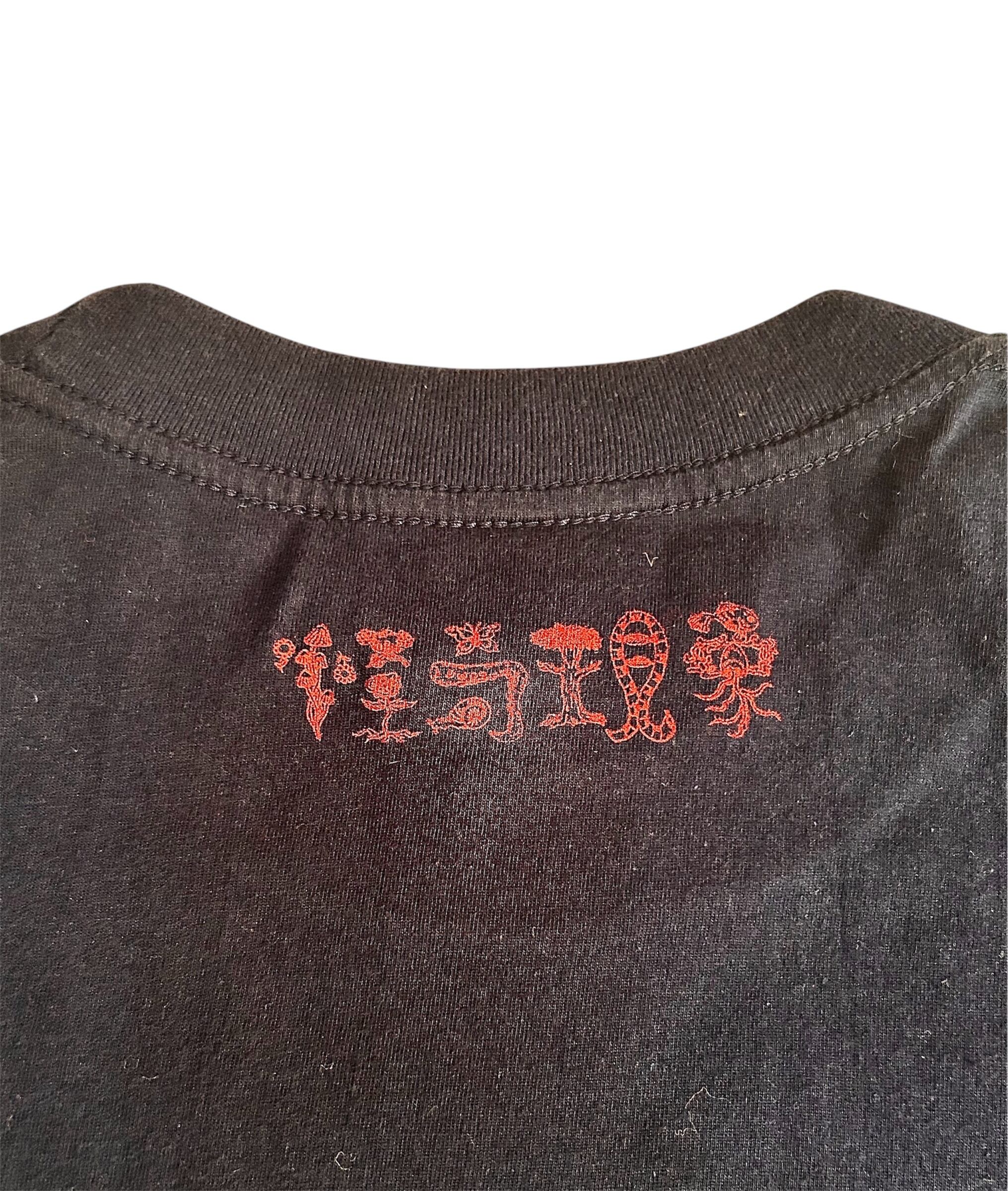 古着のTシャツを使い、元々のプリントを生かしながらホラーの雰囲気にリメイクしました。