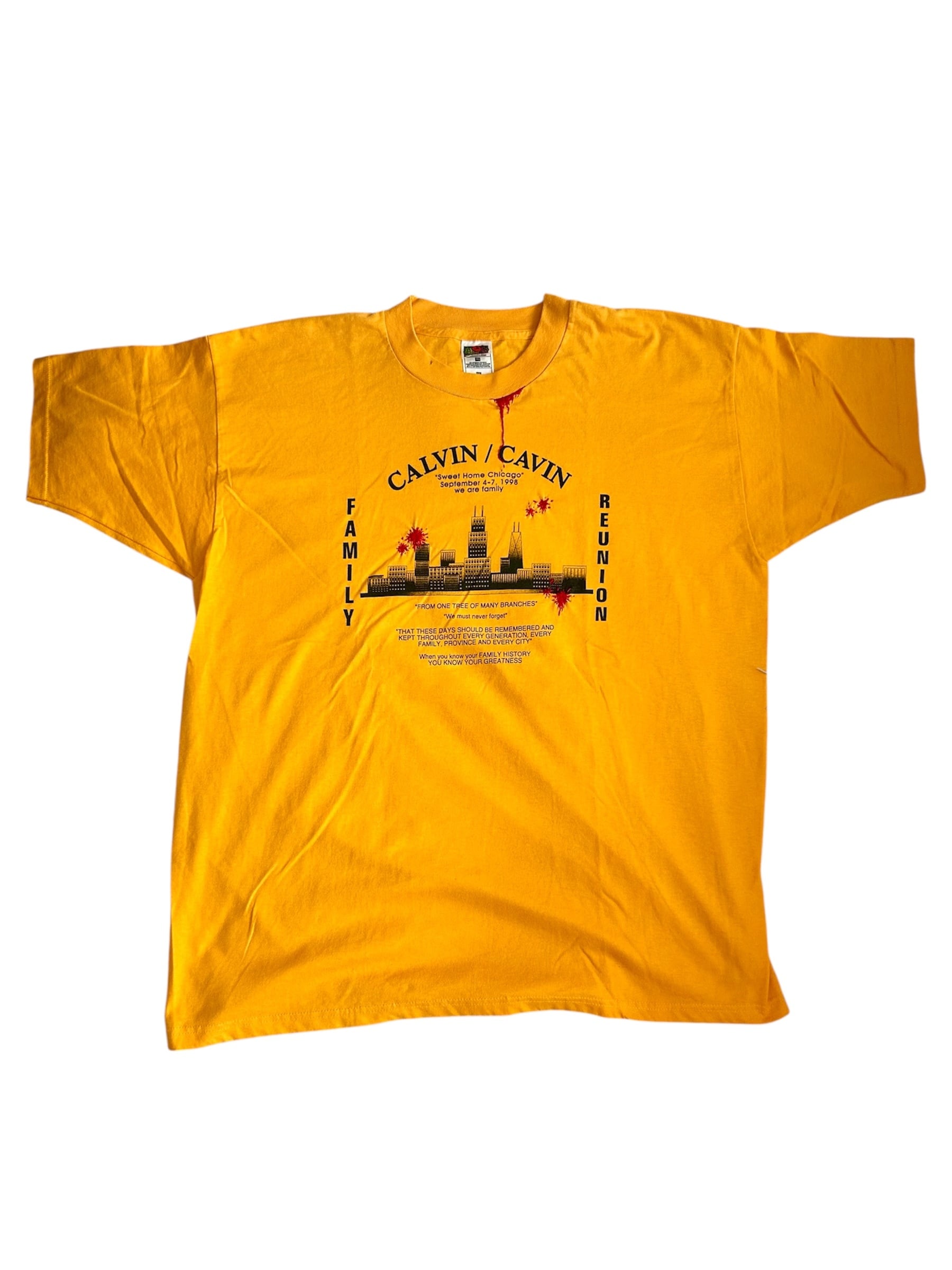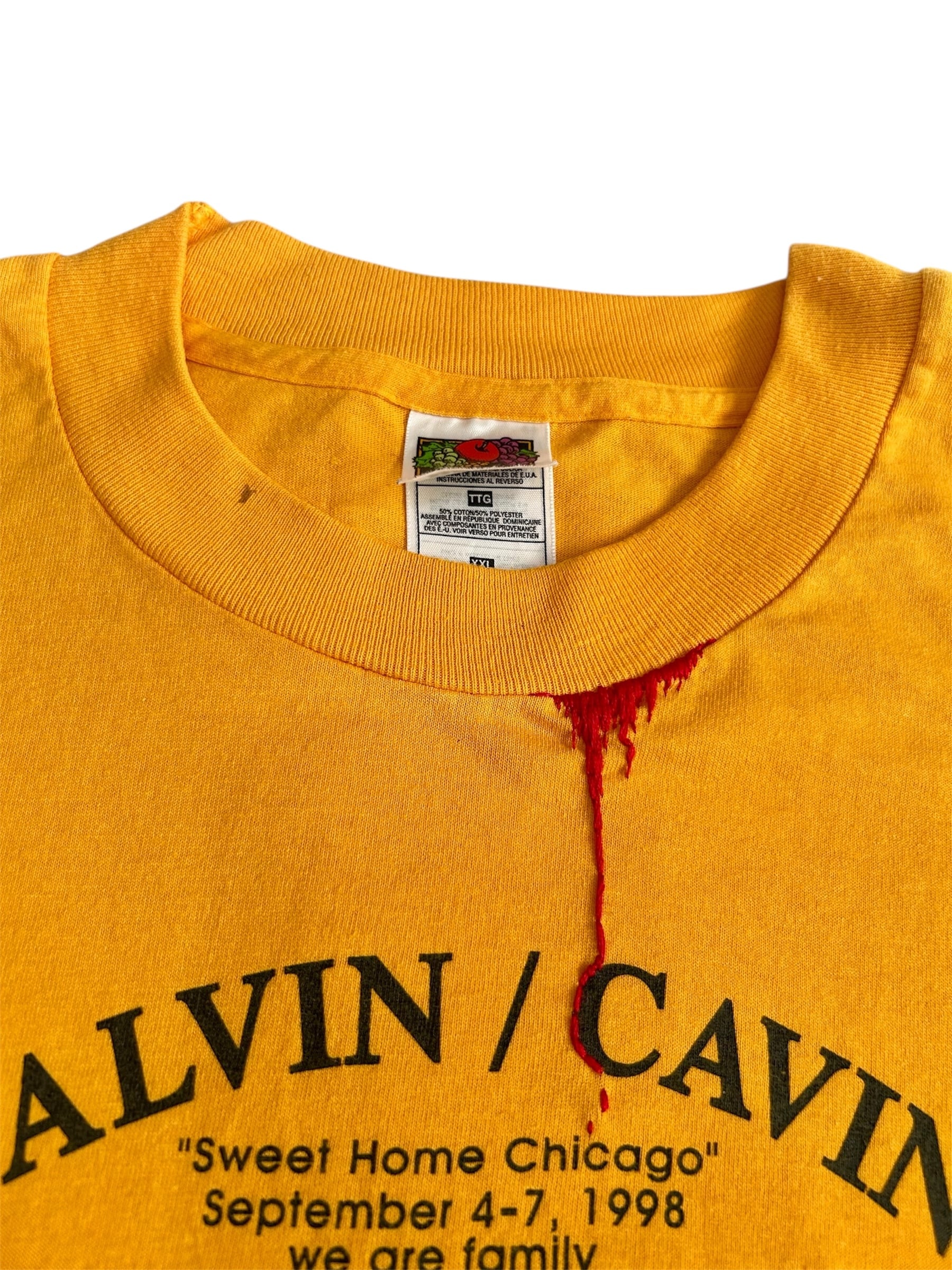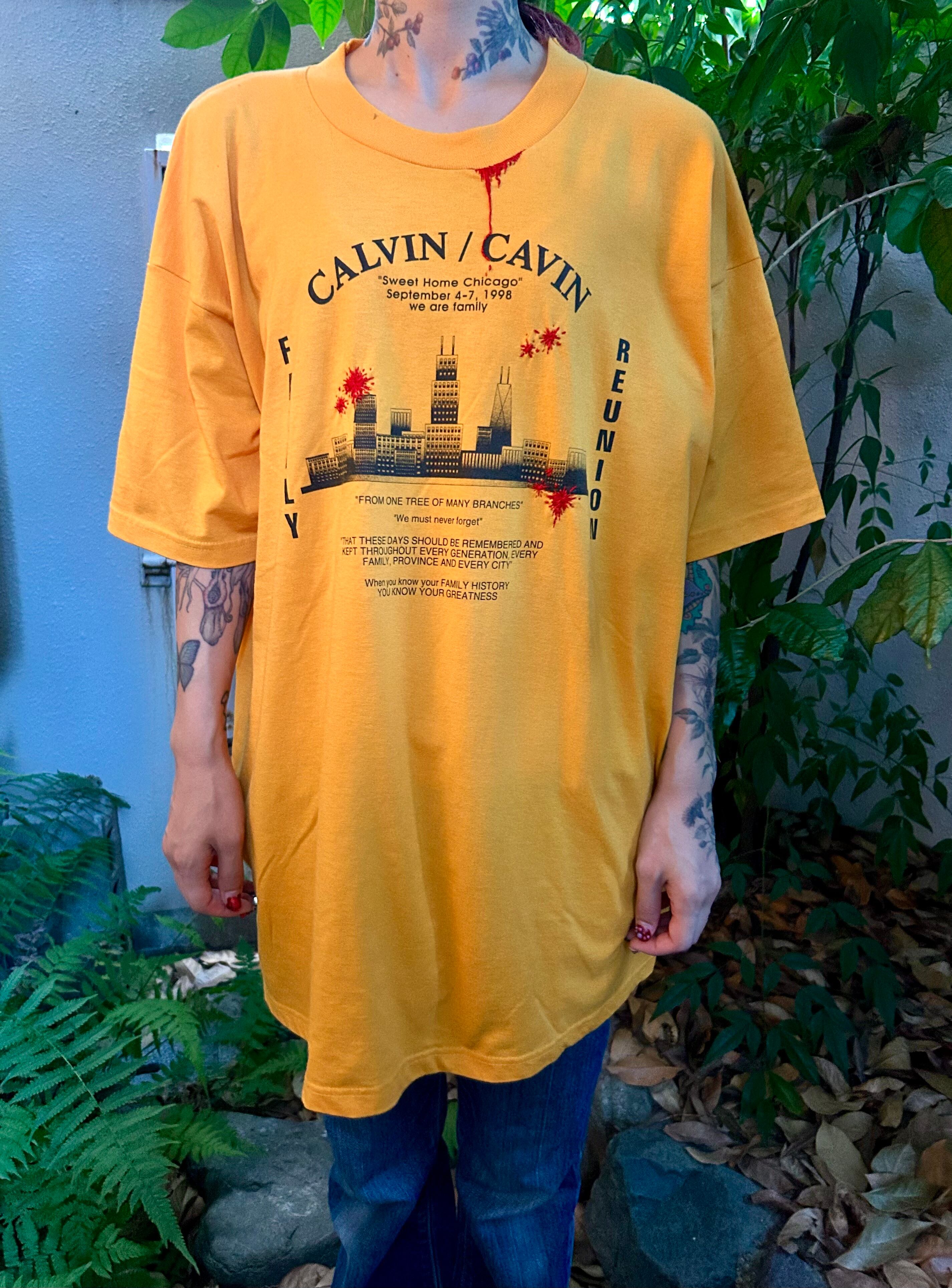 古着のTシャツを使い、元々のプリントを生かしながらホラーの雰囲気にリメイクしました。