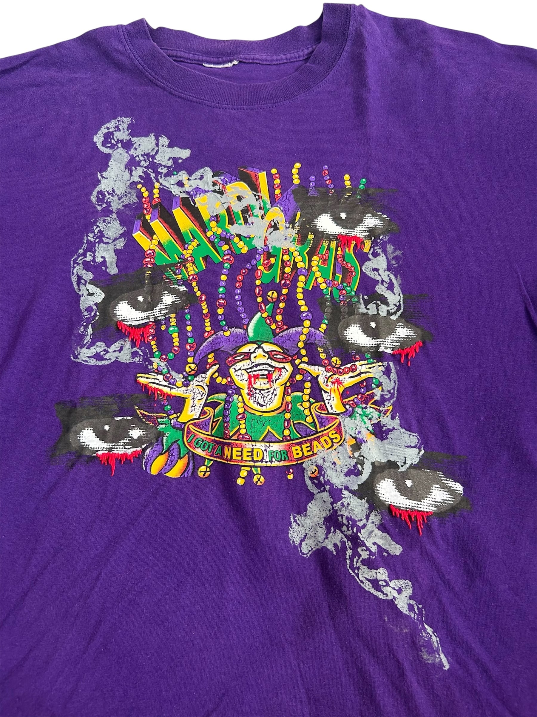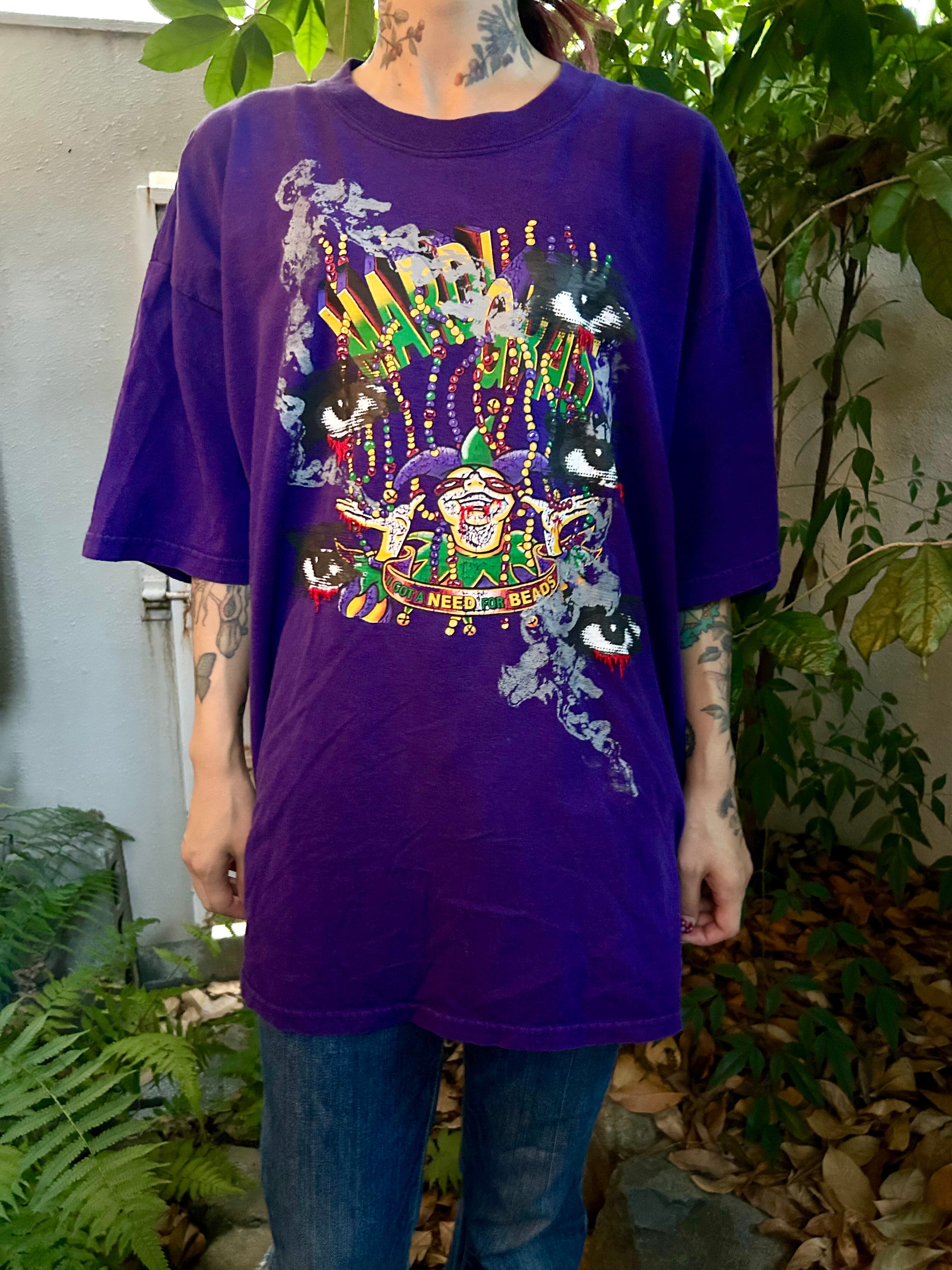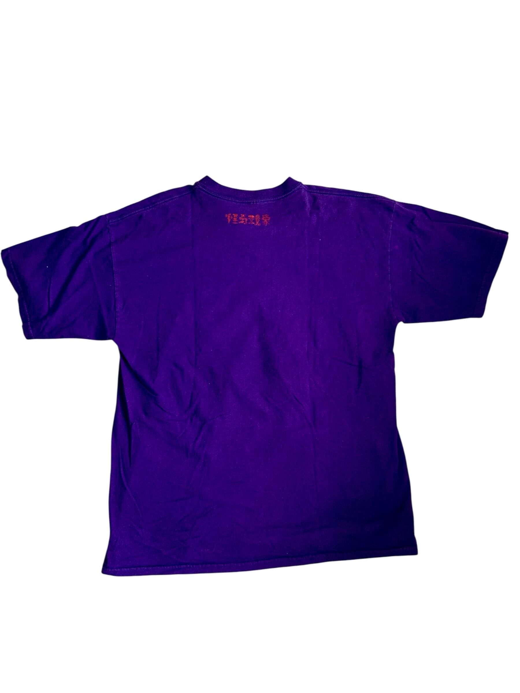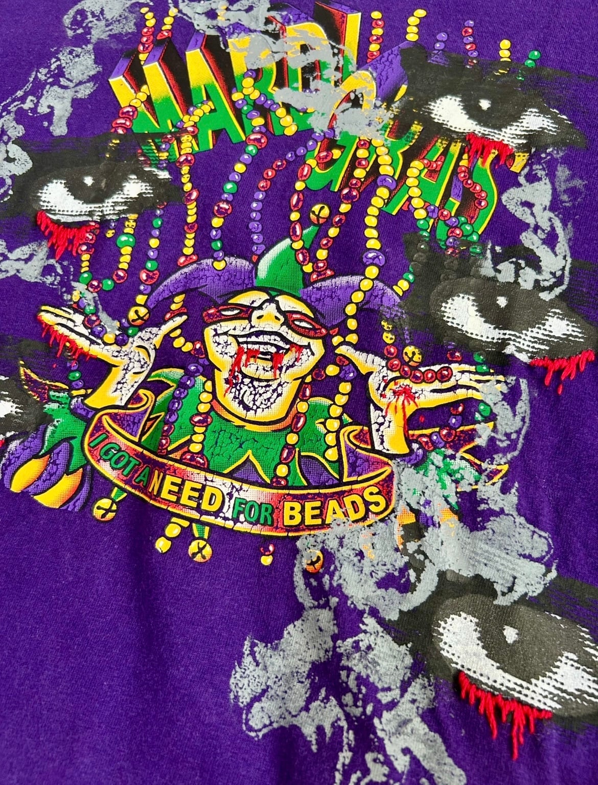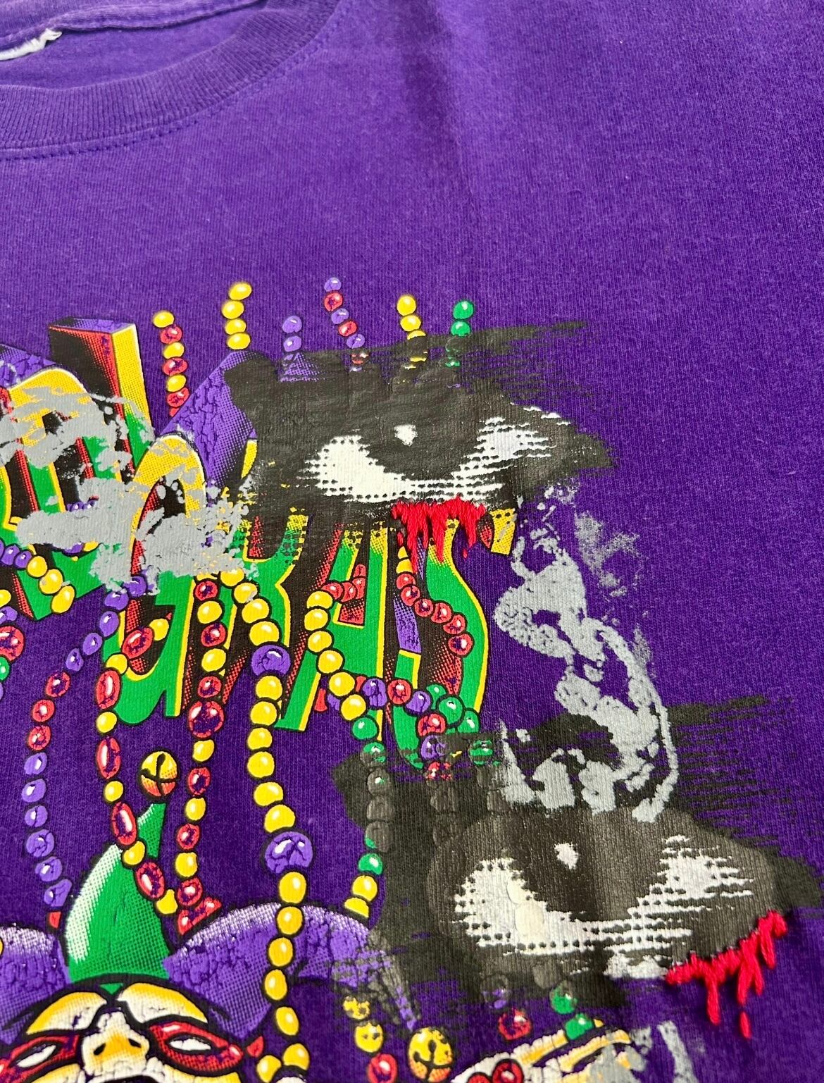 古着のTシャツを使い、元々のプリントを生かしながらホラーの雰囲気にリメイクしました。