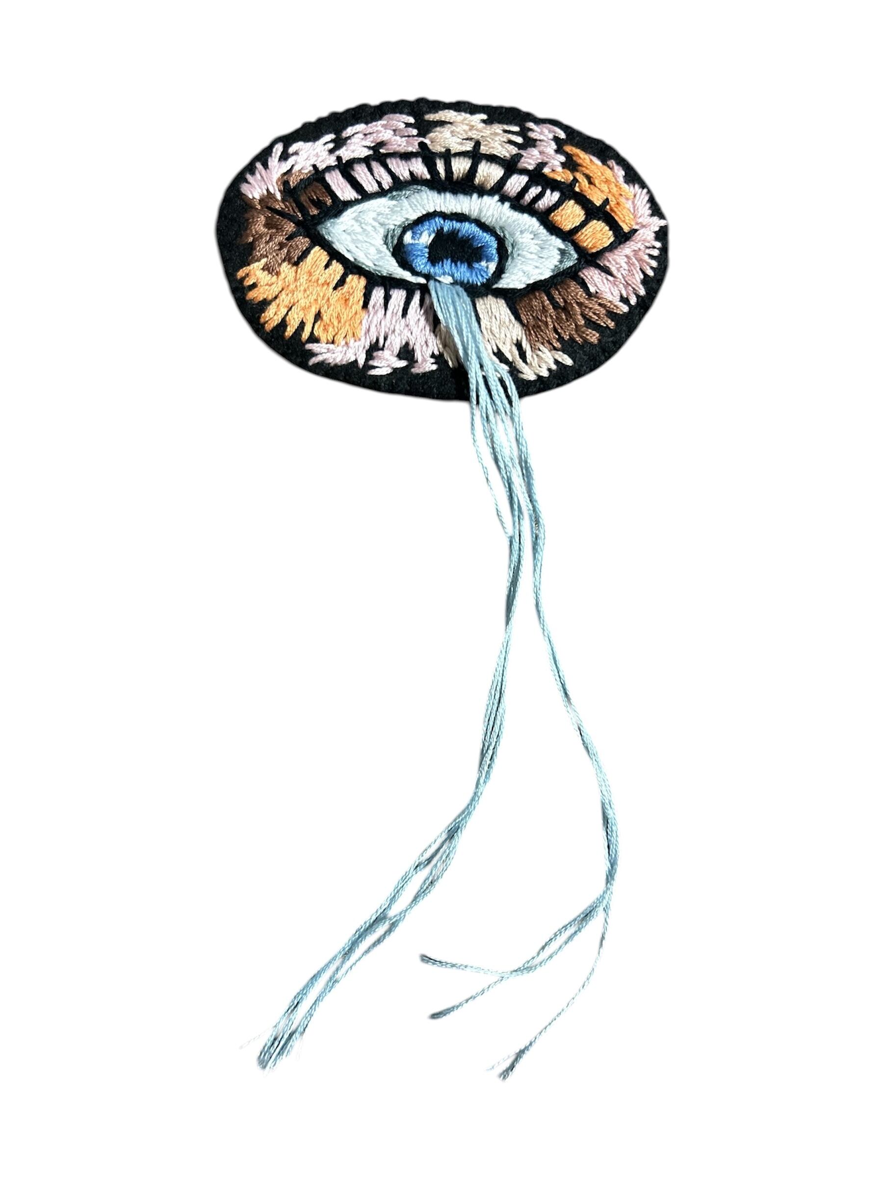 目の手刺繍ブローチ 号泣ver.(中・水色)