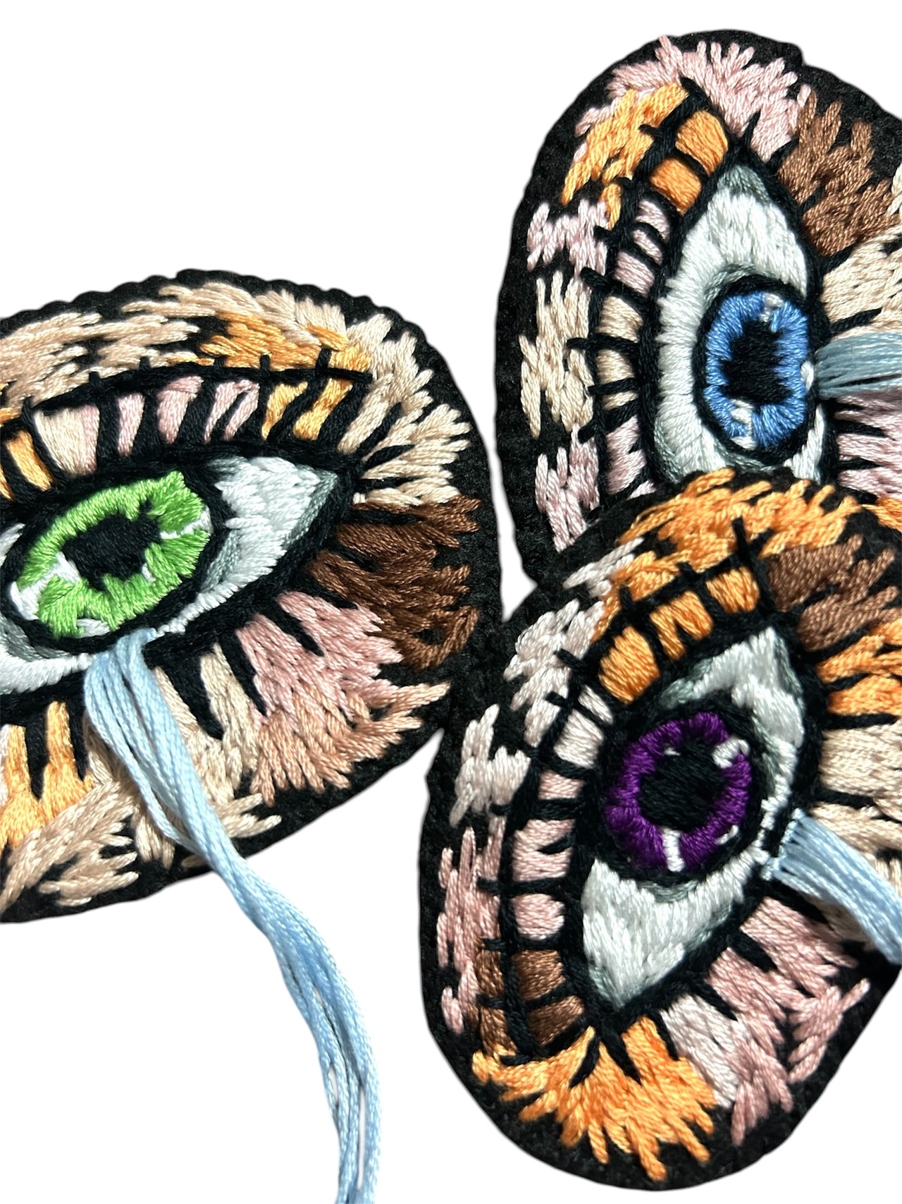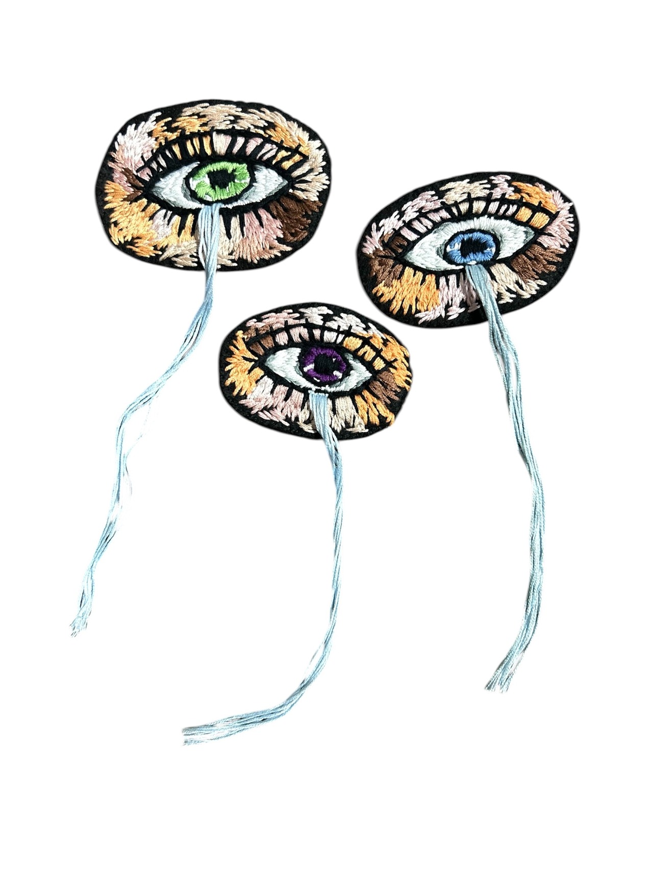 目の手刺繍ブローチ 号泣ver.(大・黄緑)