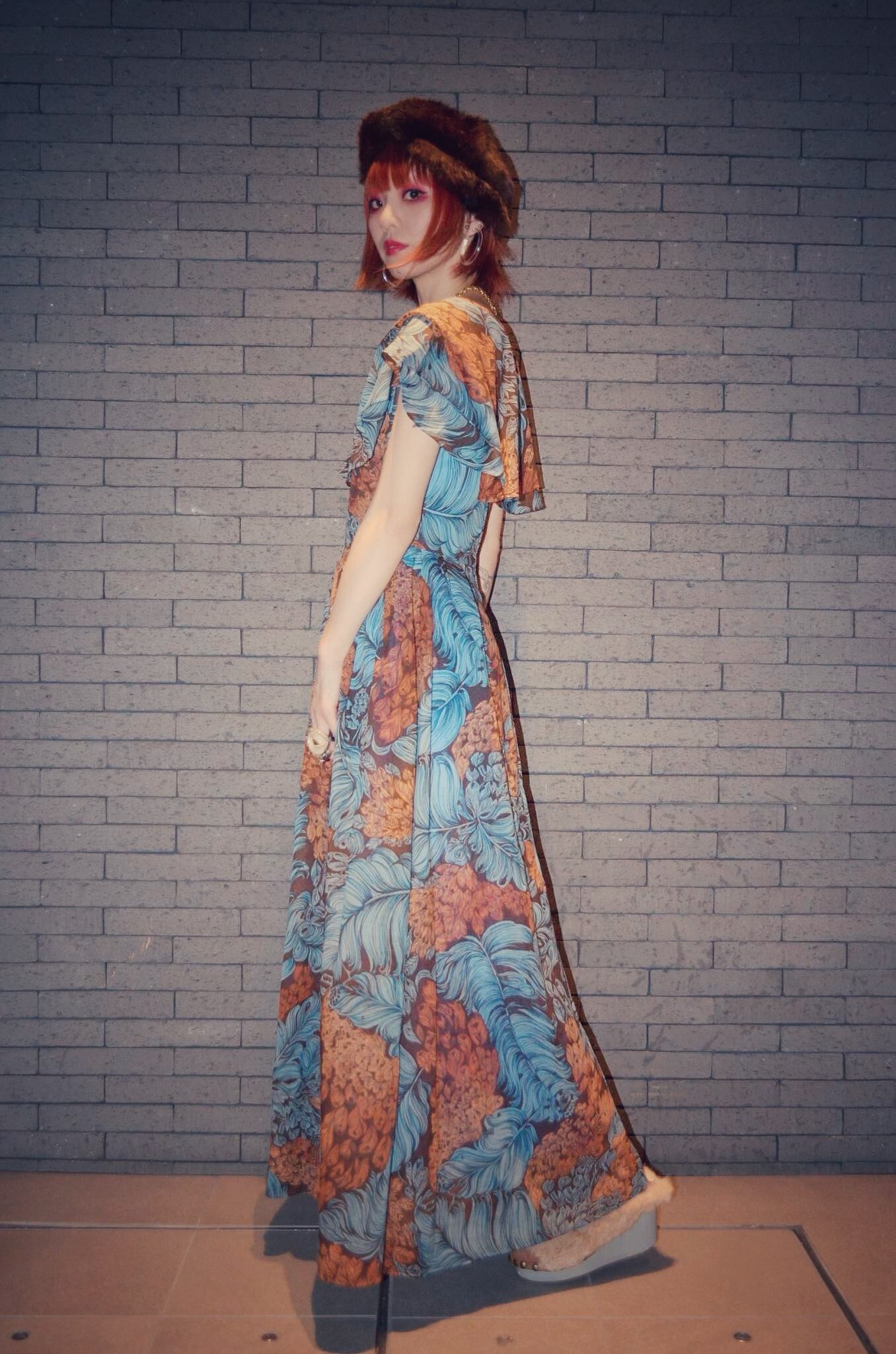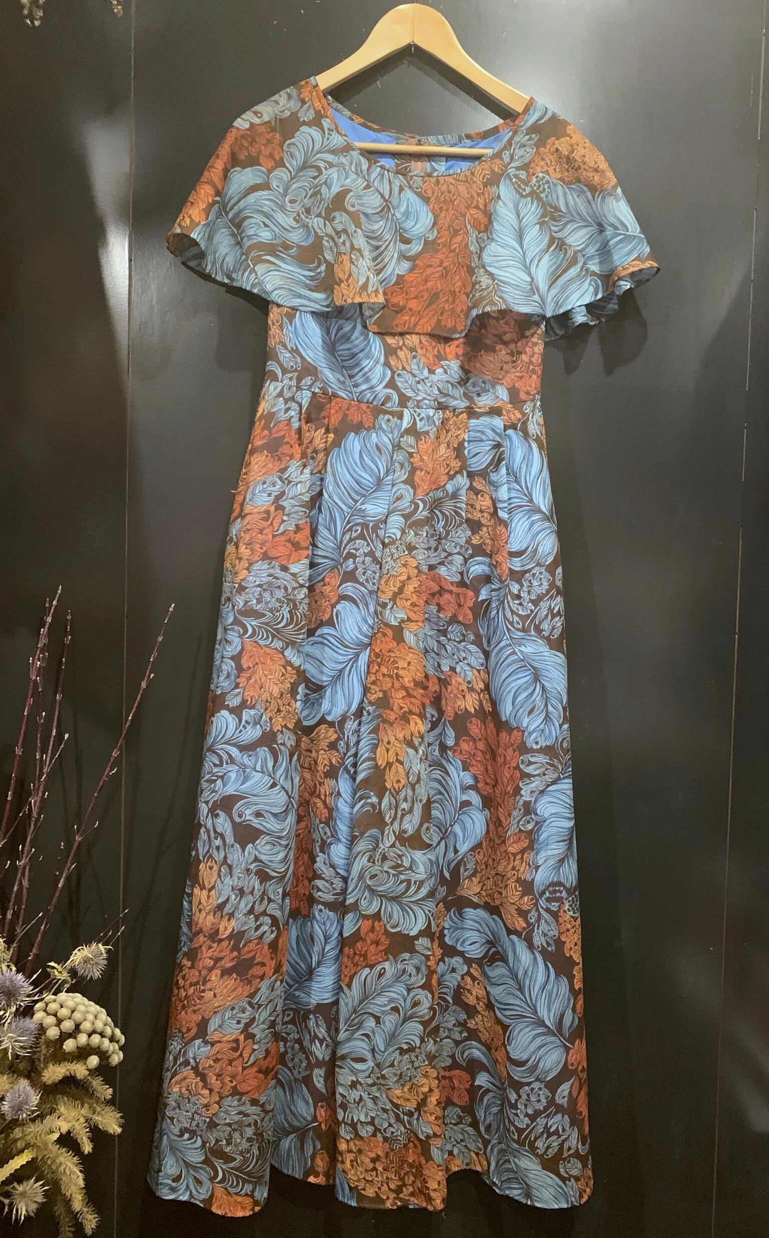 羽根柄の綺麗な形のワンピース