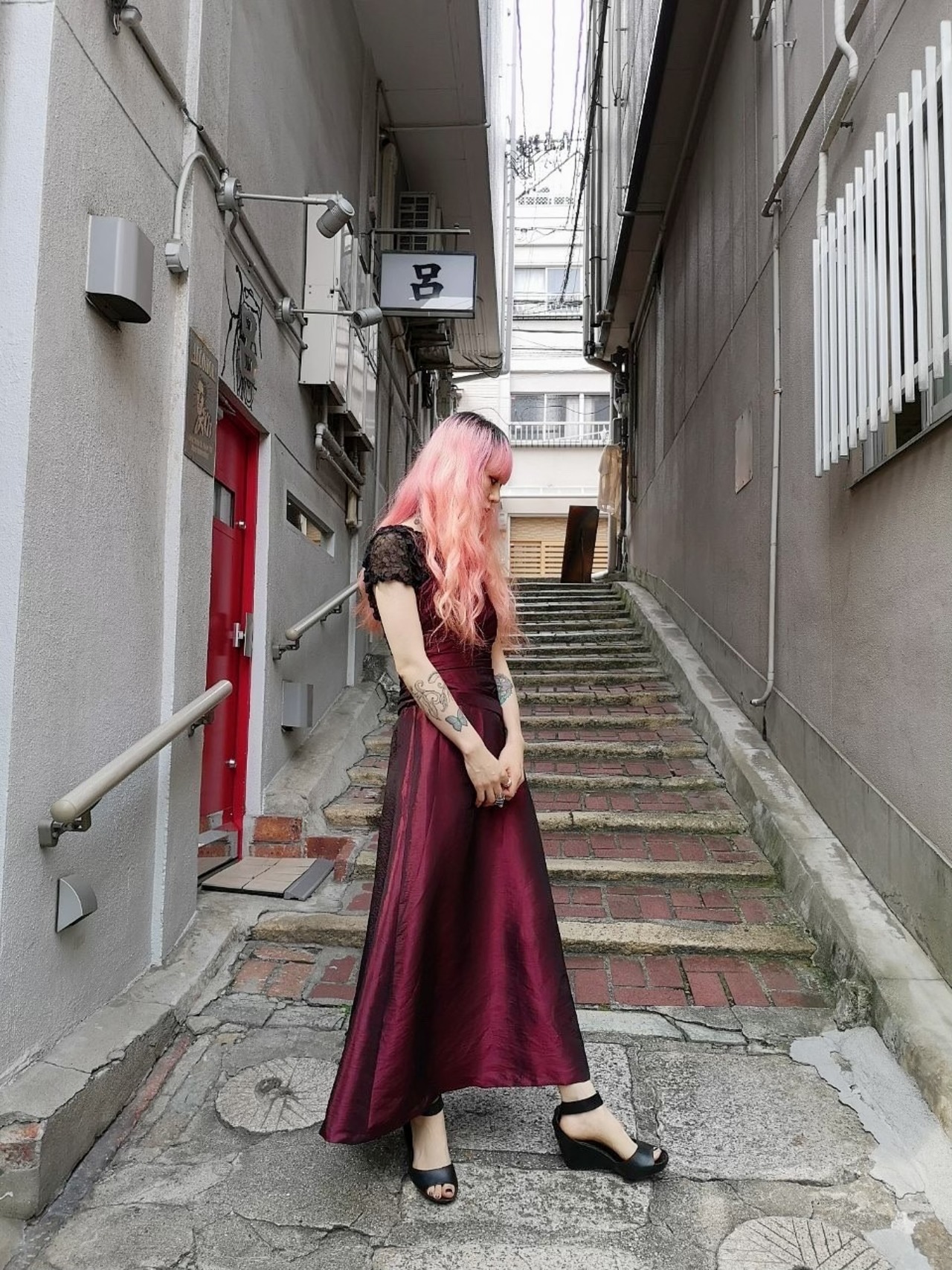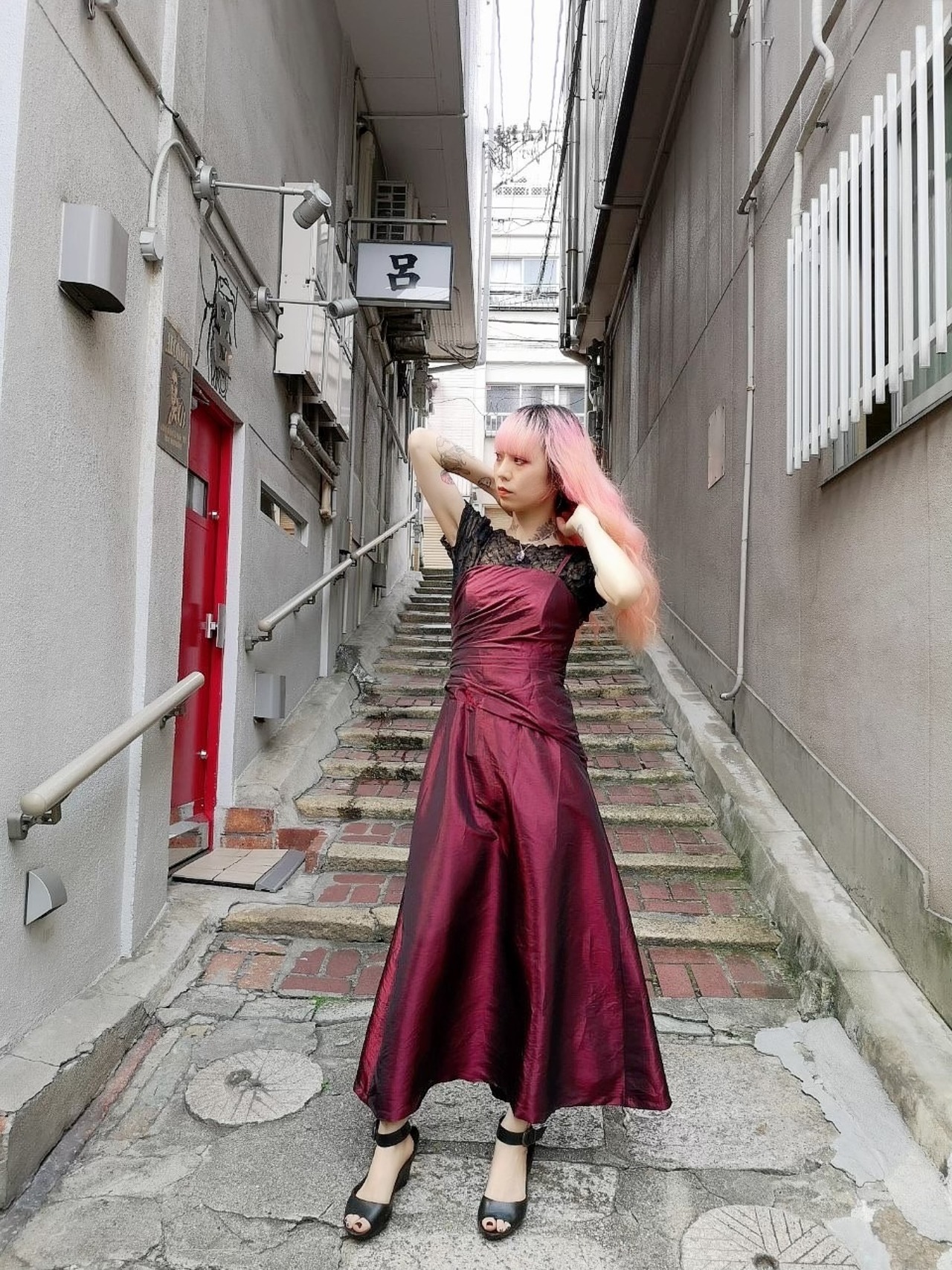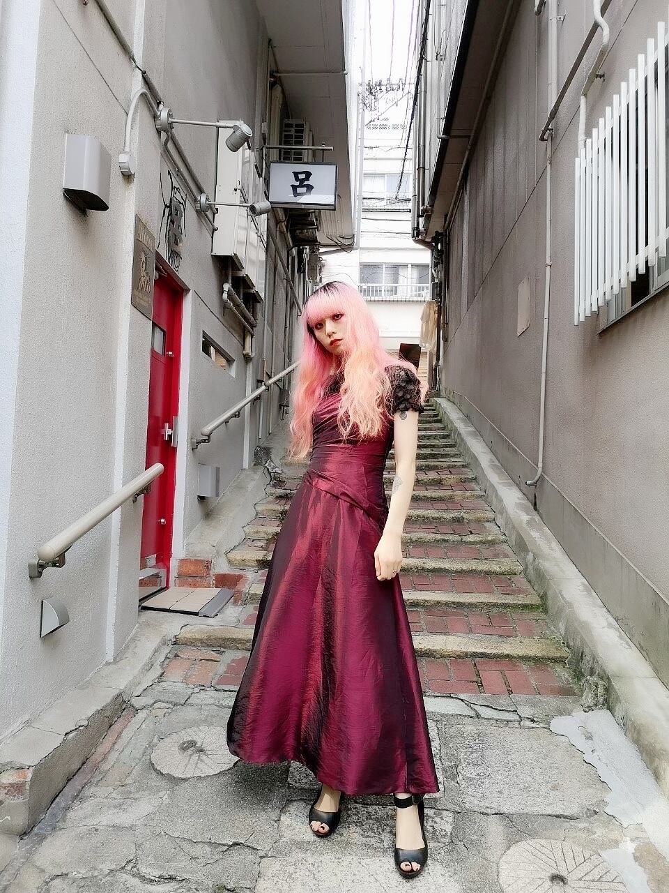 メタリックのロングドレス