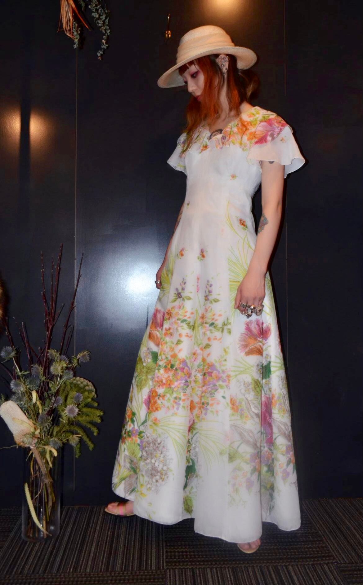 2つに重なっている袖や、ウエストから裾にかけて広がるシルエットが綺麗です。