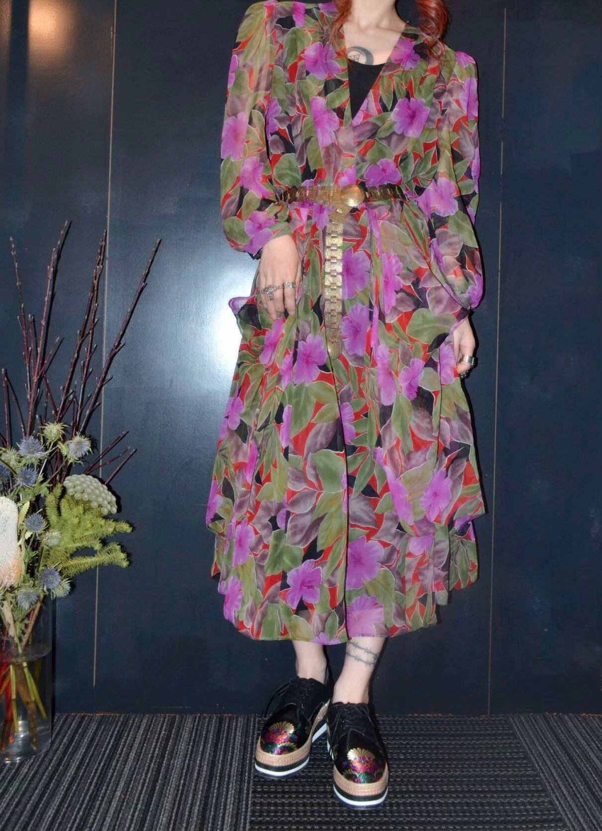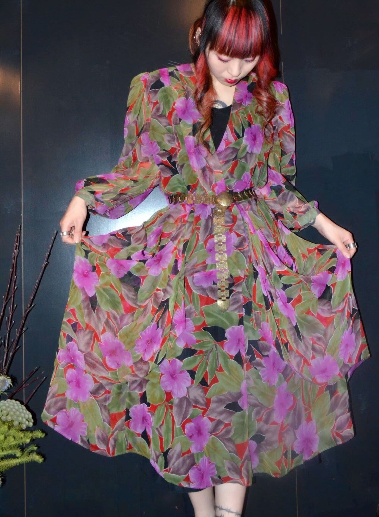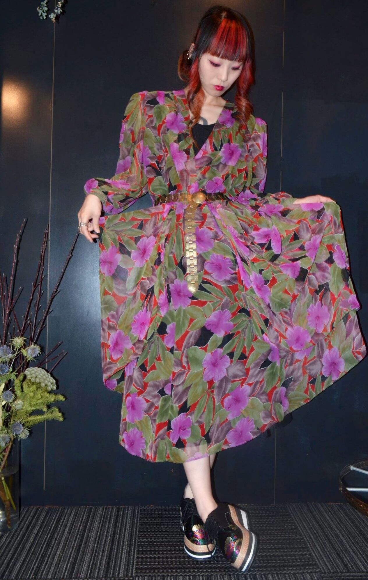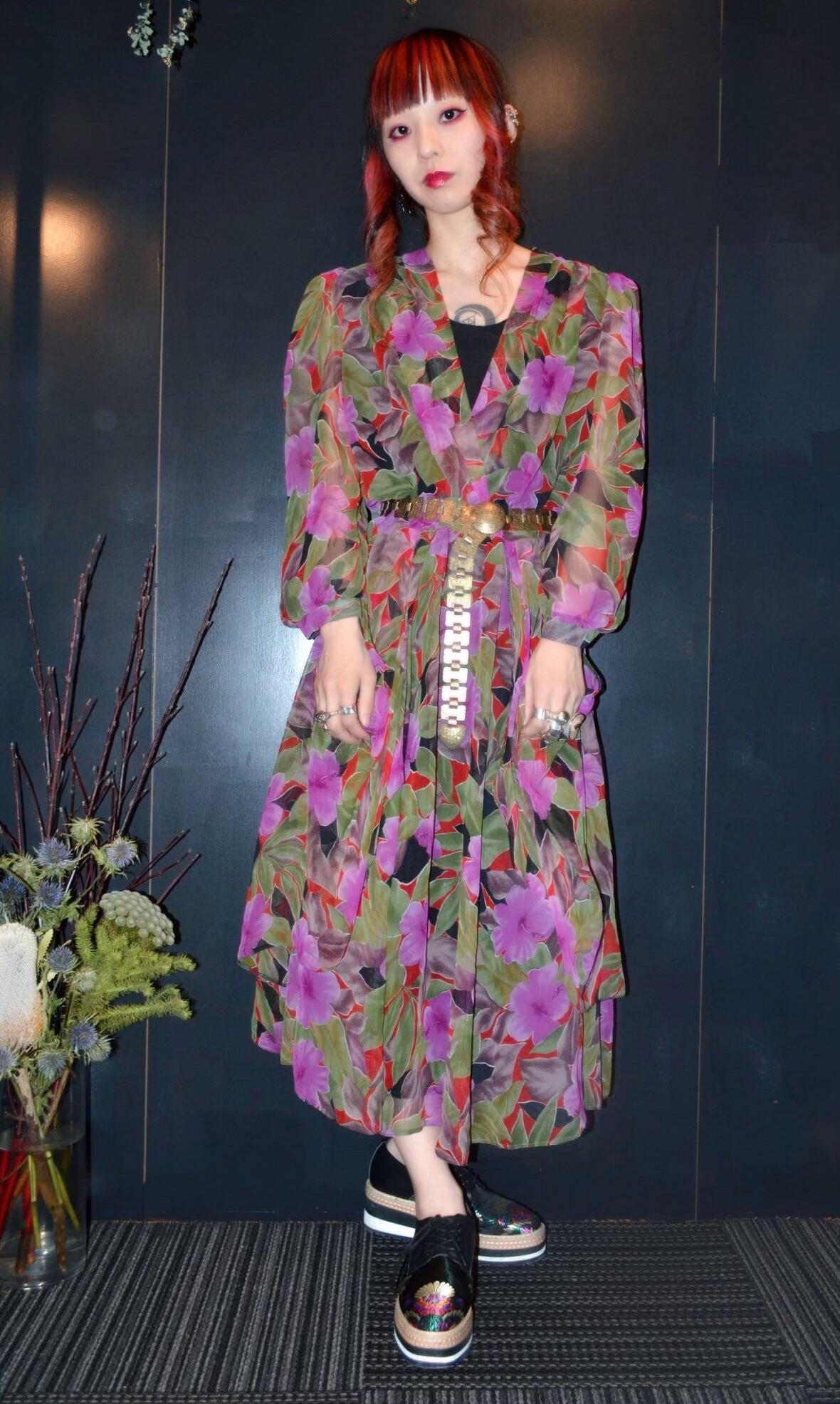 花柄のデザインワンピース