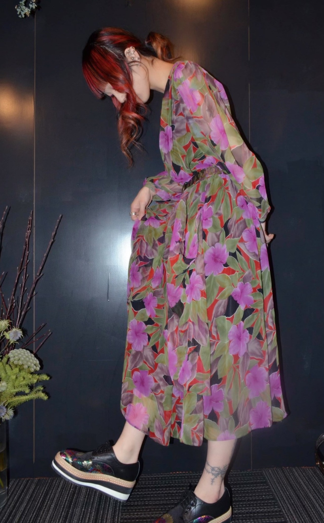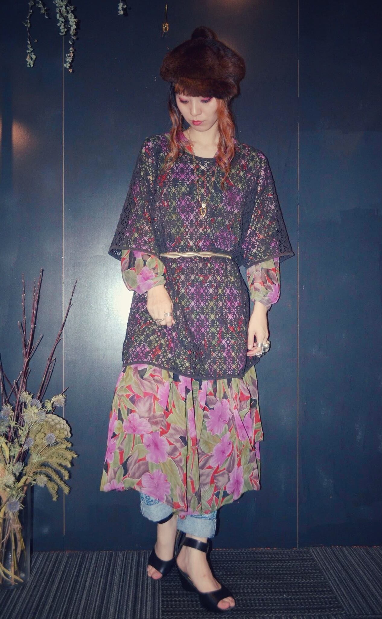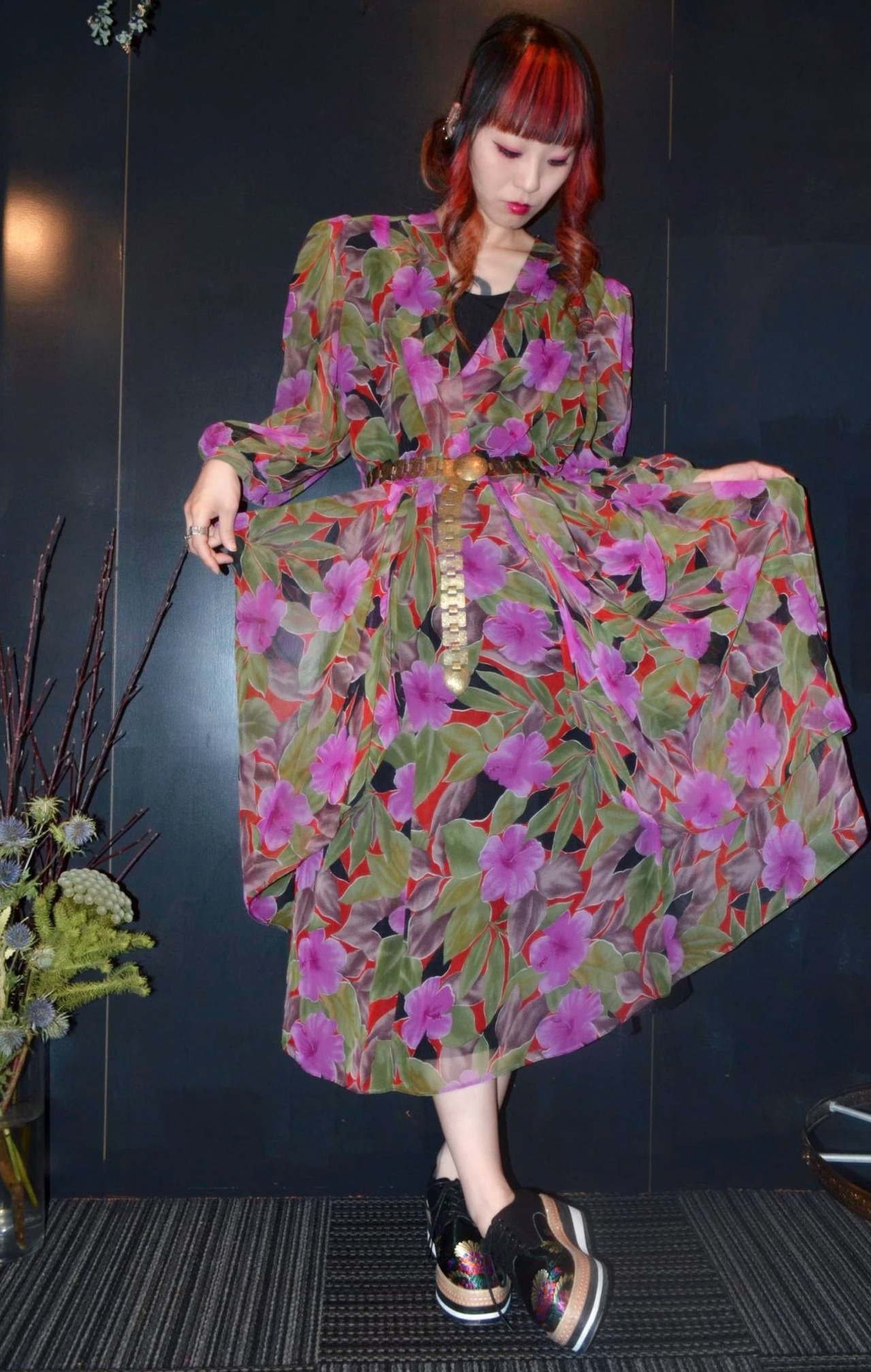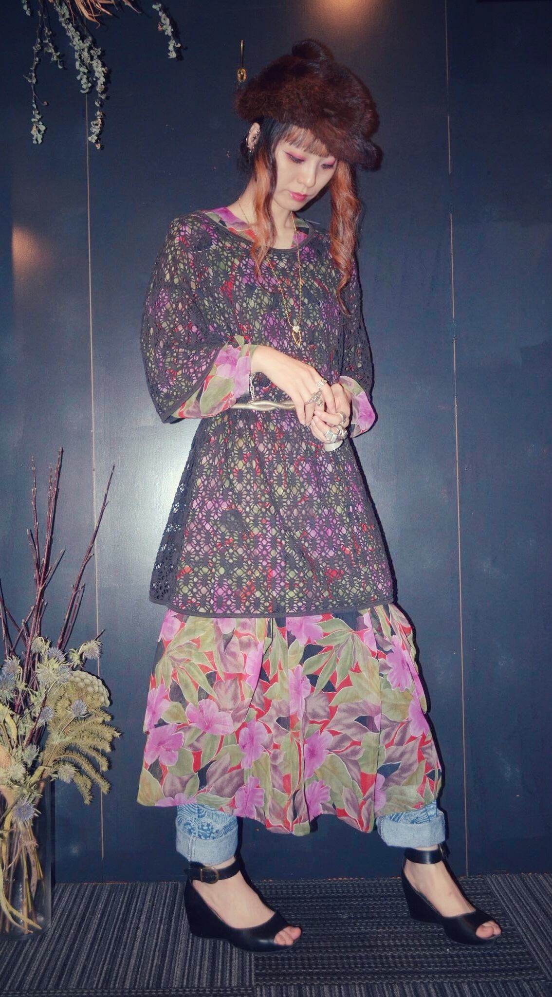 花柄のデザインワンピース