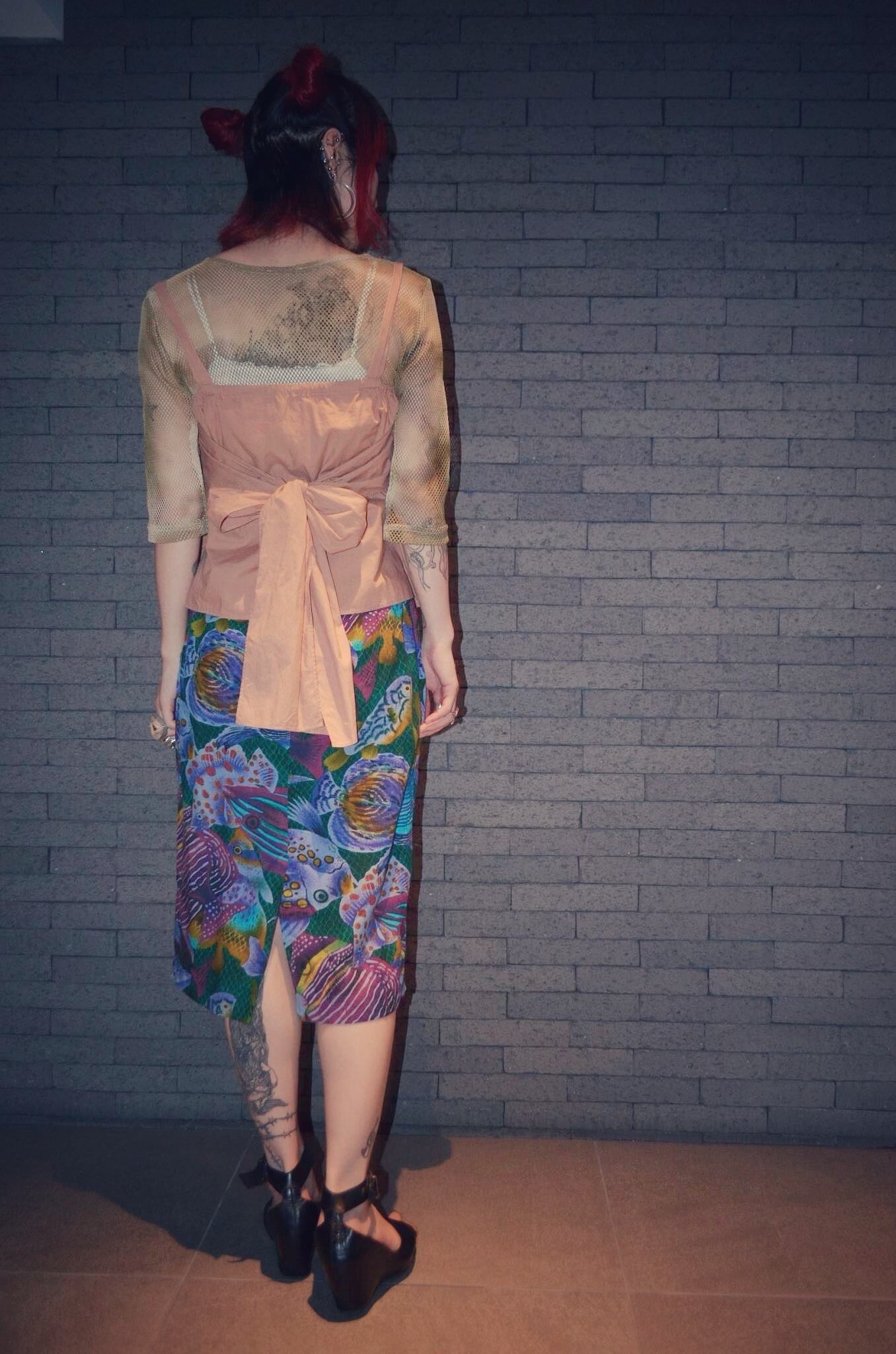 毒々しいカラーの生き生きとした魚柄が特徴的なスカート