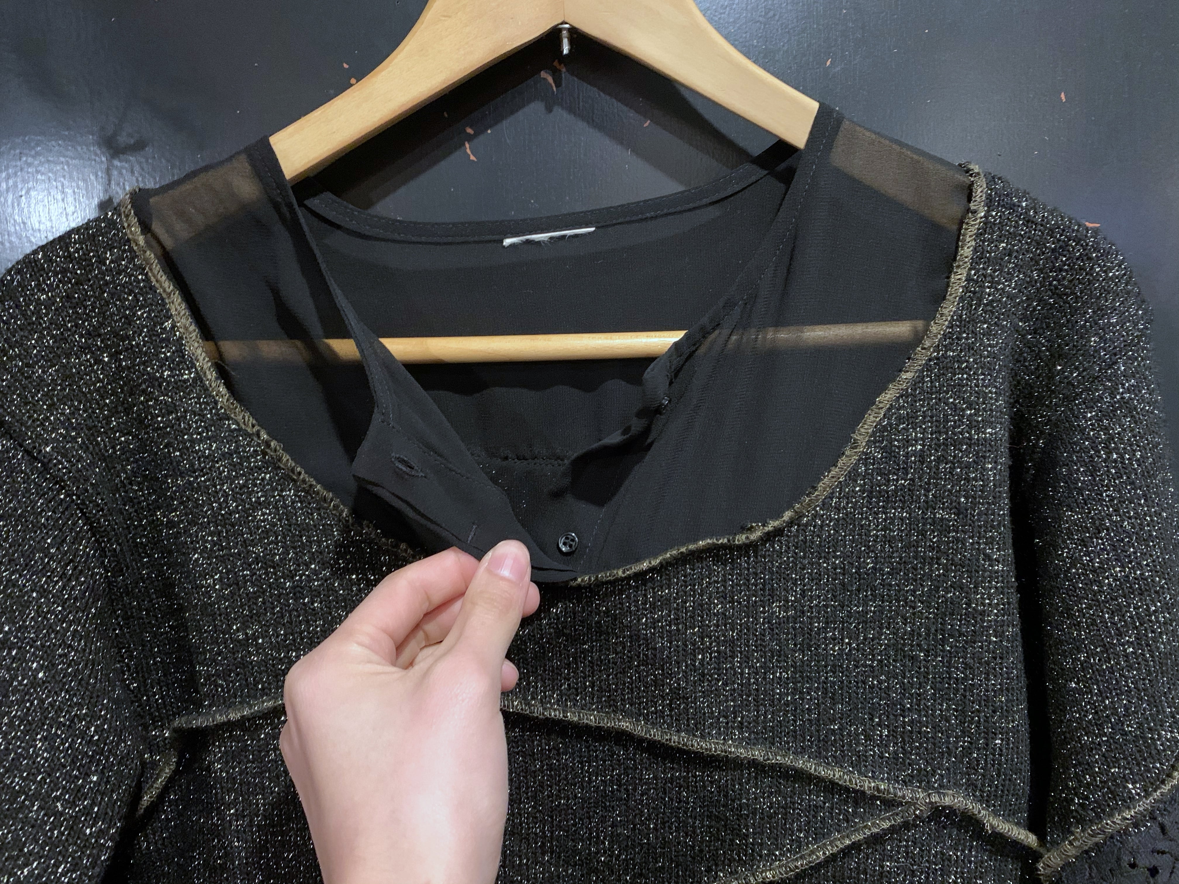 シースルー素材のトップスはボタンで開閉出来るタイプなので、首元の部分のボタンを開けて着ても良いです。