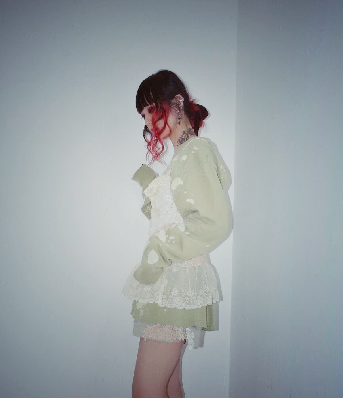 レースやコットン、花刺繍レース、ニット素材を使用しクラスト風にしました。