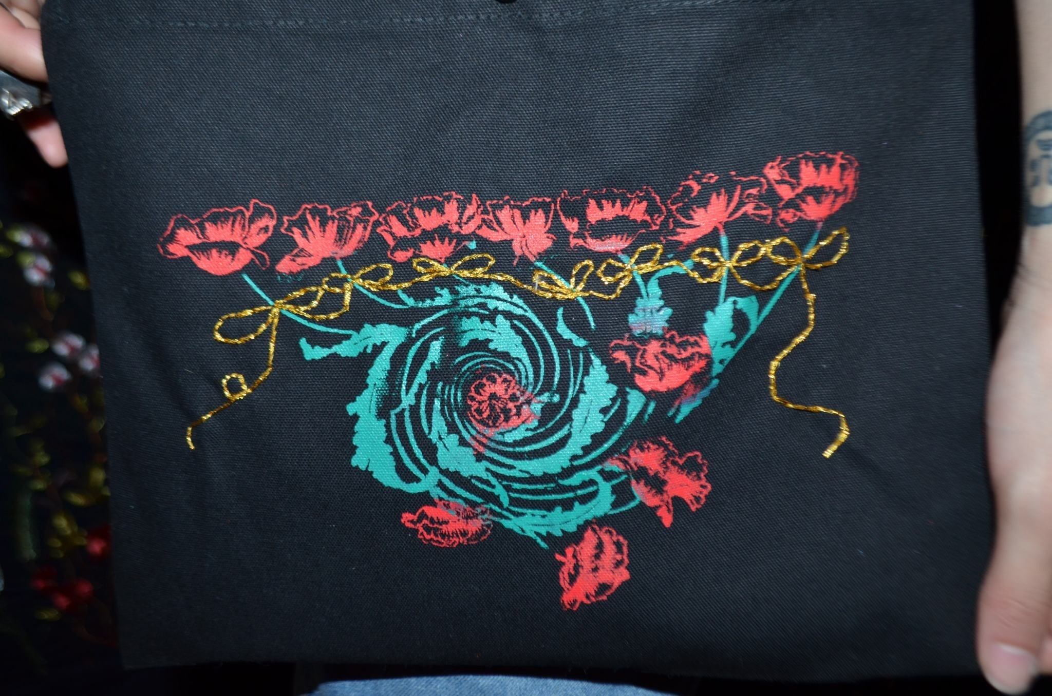 さらに金色の刺繍糸を使いリボンを手刺繍しました。