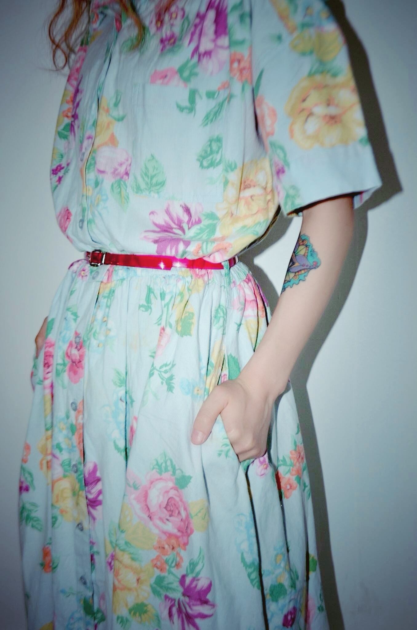 花柄のボタンダウンタイプのワンピース
