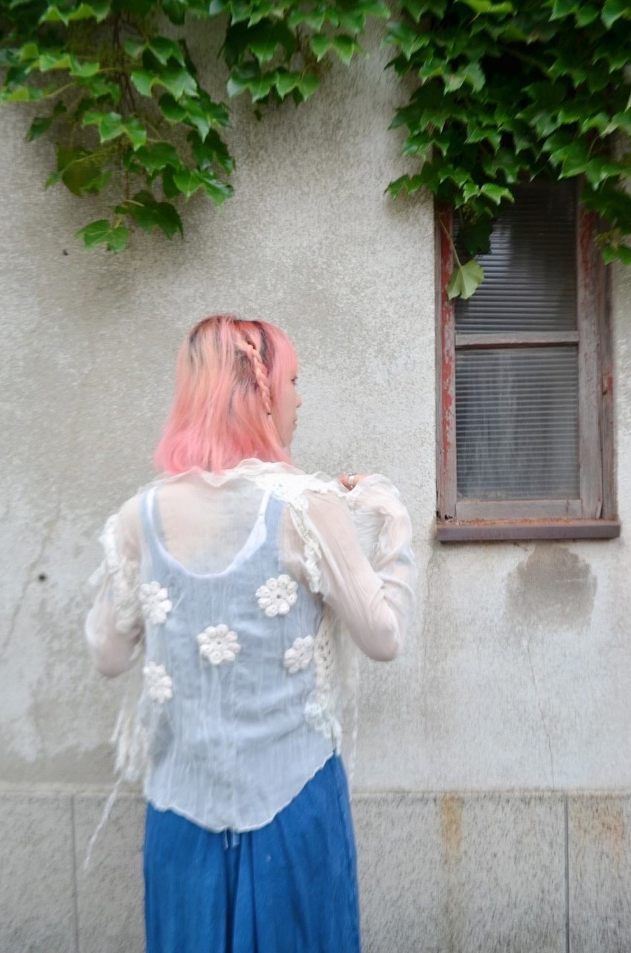 ボディはusedのオーガンジー素材のシースルーシャツです。