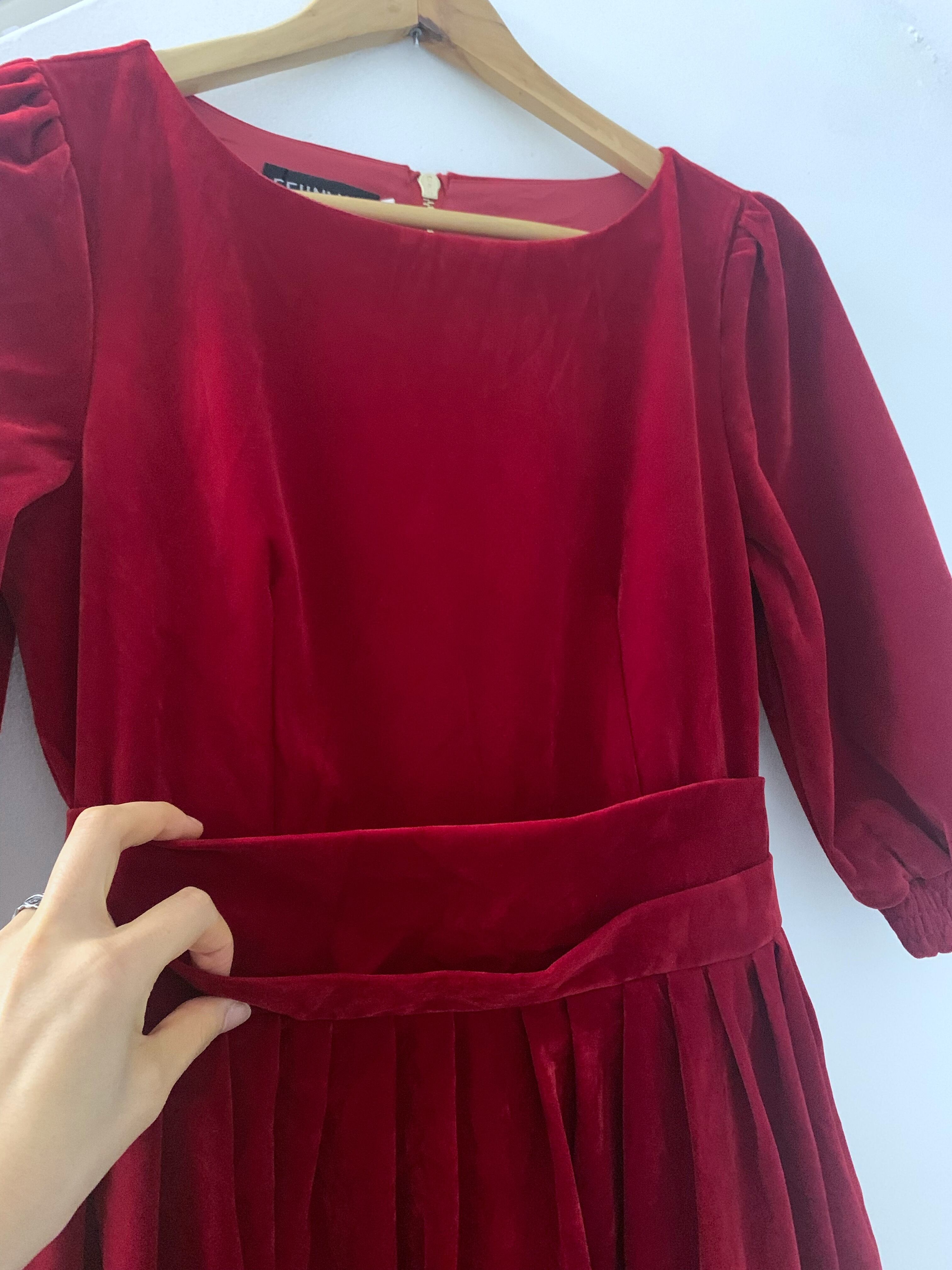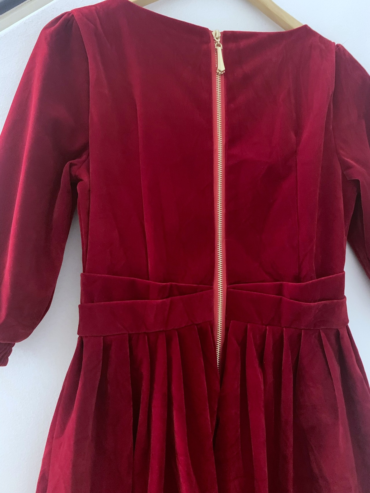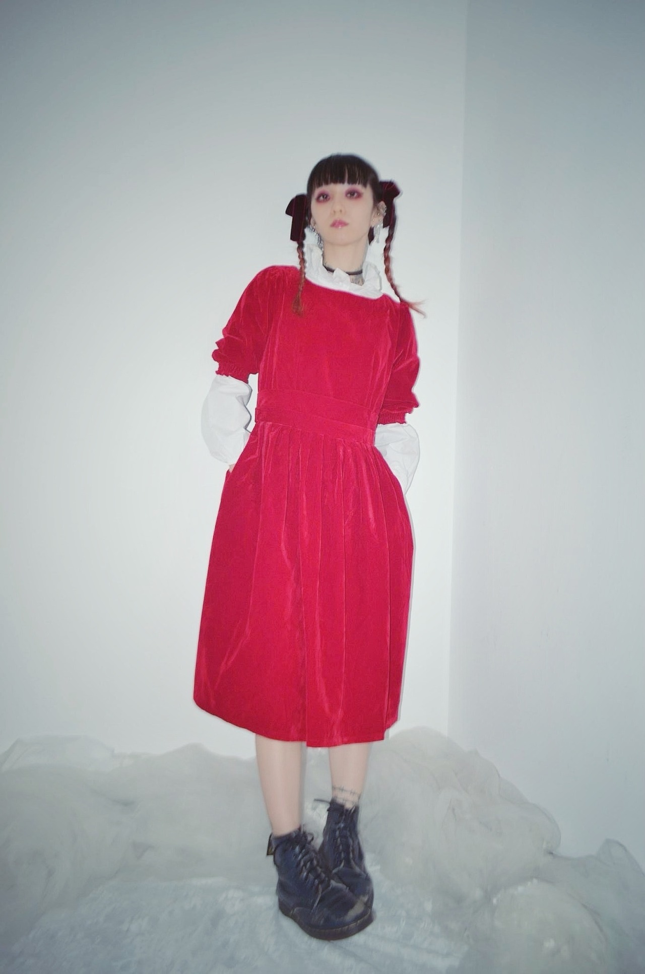 しっかりと厚みのある別珍素材を使用、ジップはゴールドカラーで重厚感あるワンピース