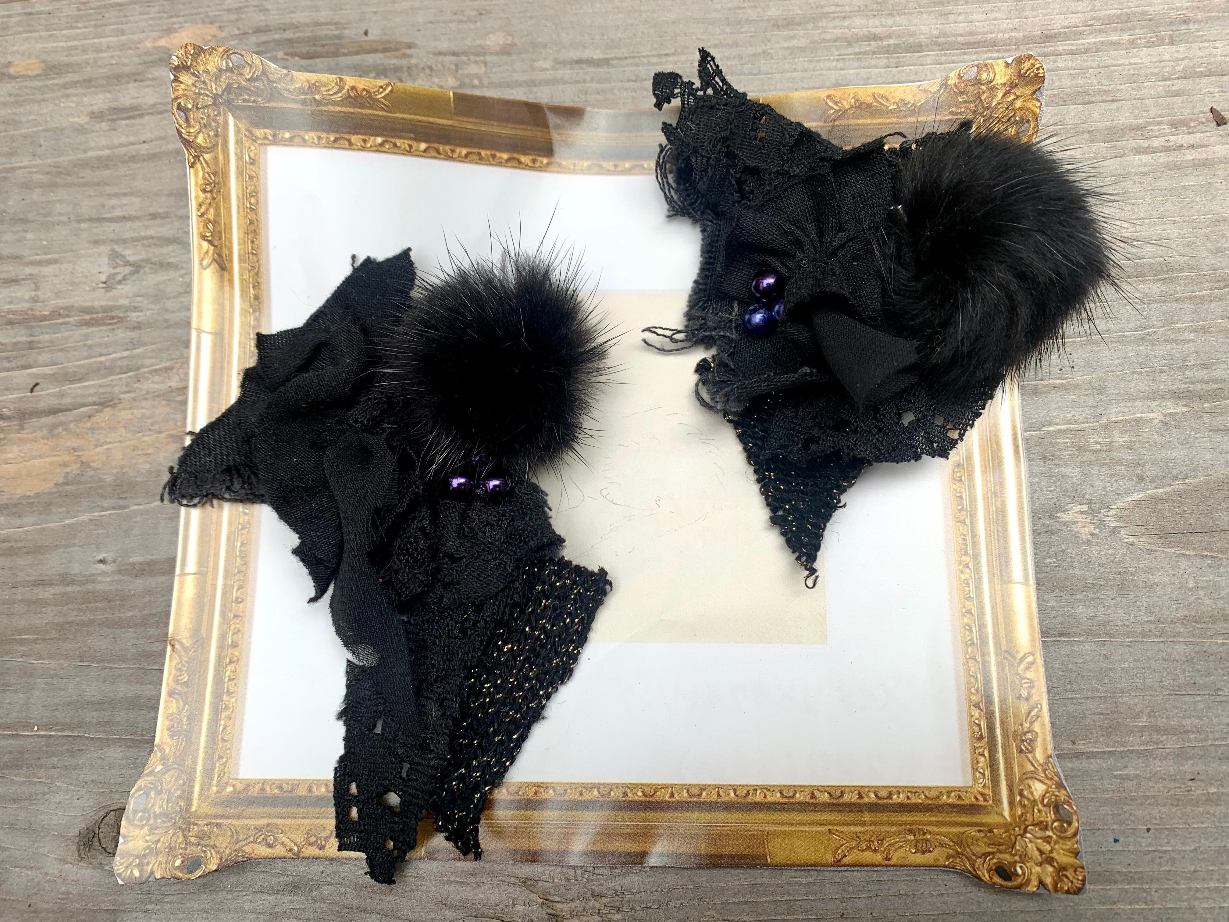 レースやコットン、色んな布やパールビーズ等を組み合わせて可愛くしました。