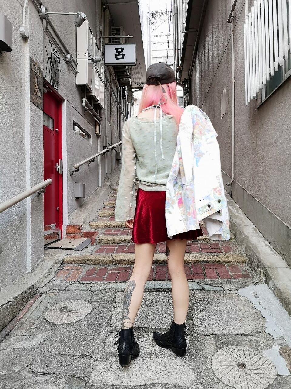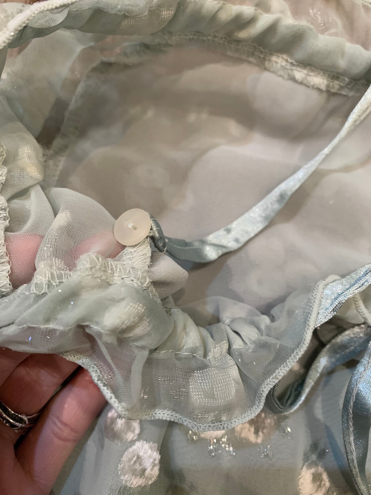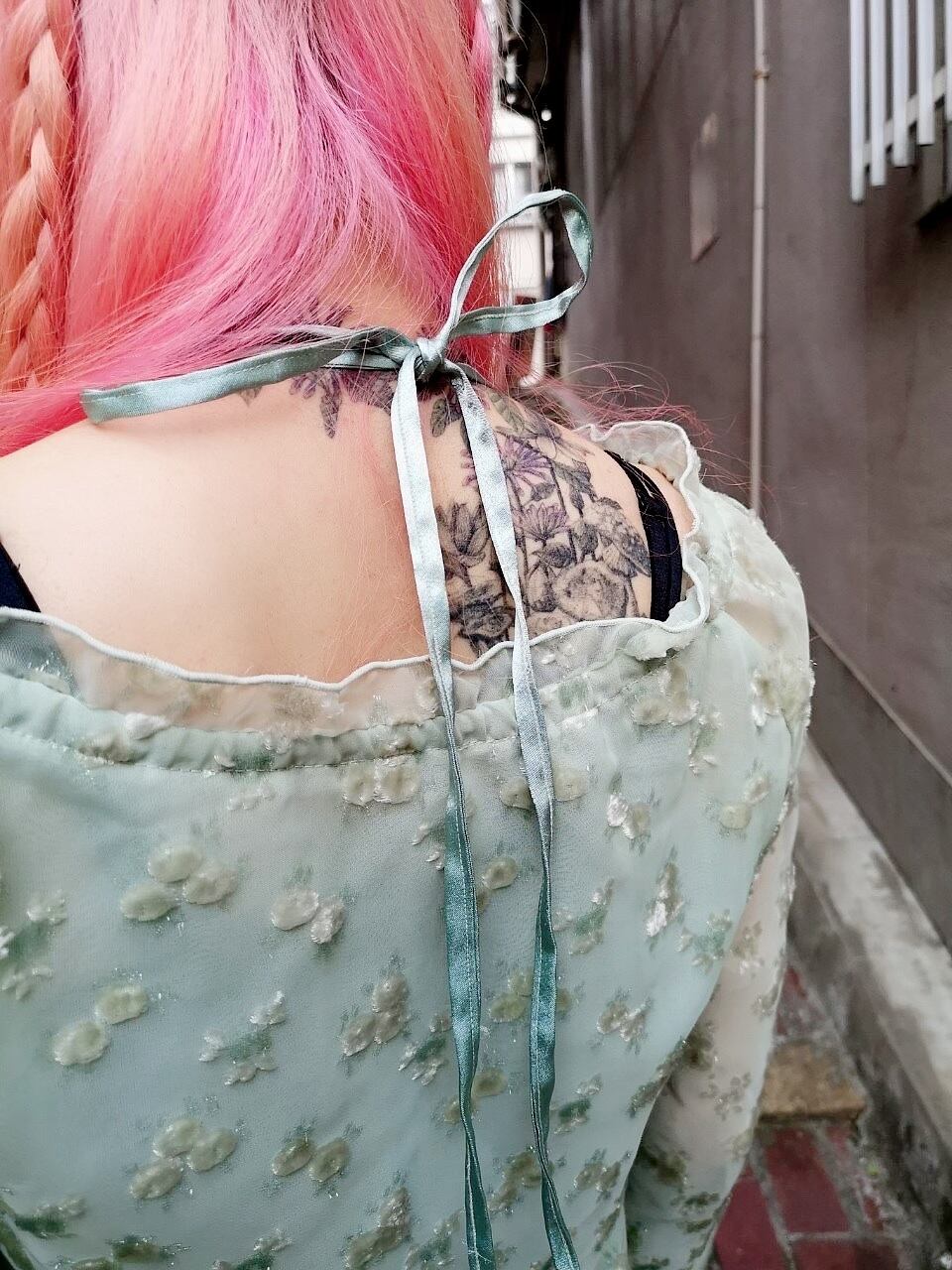 首元はリボンで絞れて、ホルターネックが付いてます。