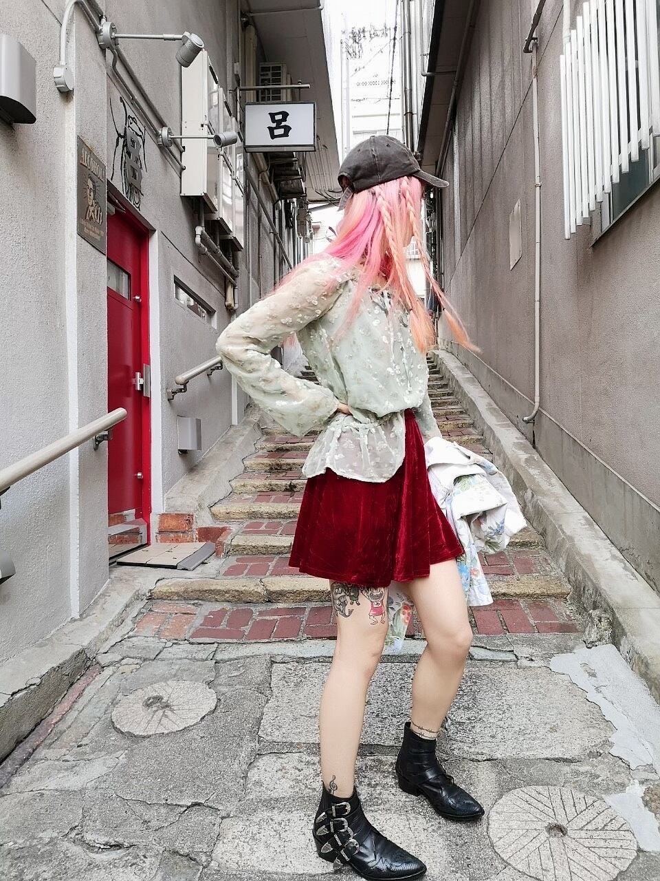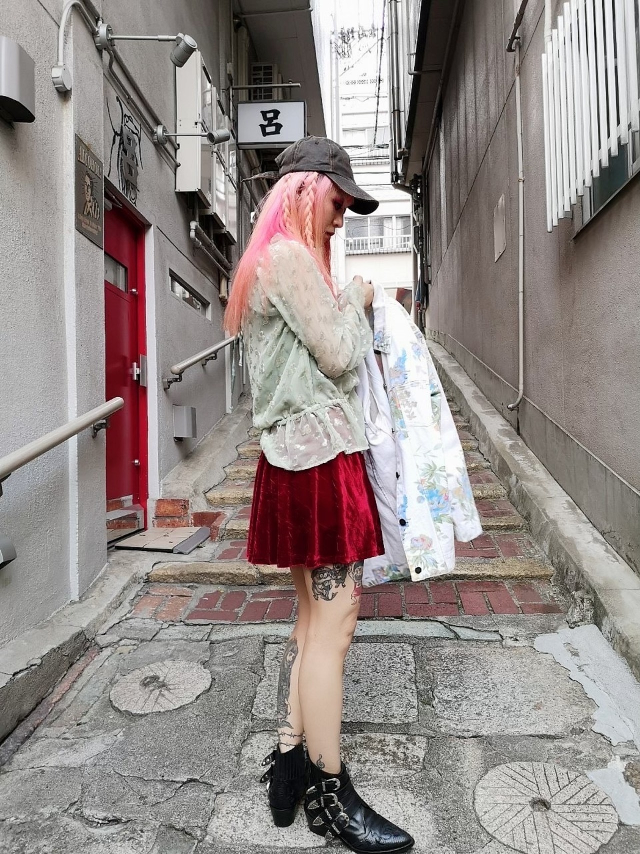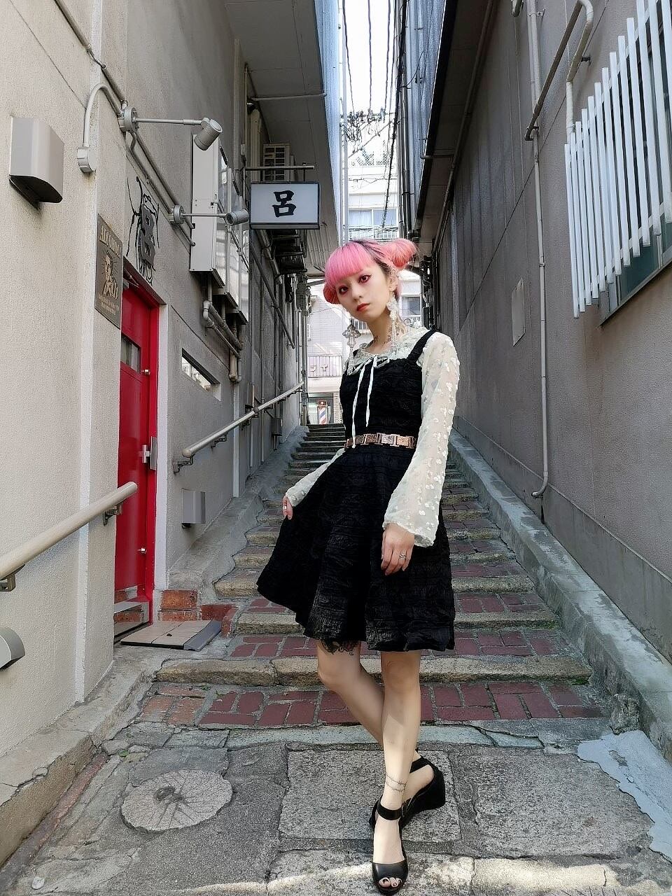 首元はリボンで絞れて、ホルターネックが付いてます。
