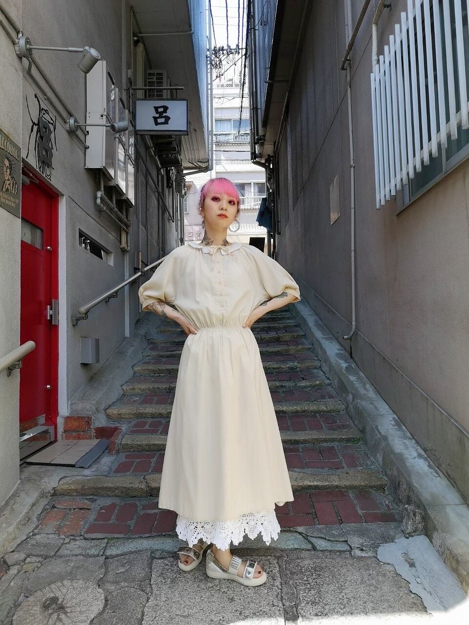 首元のレースとリボンがポイント!