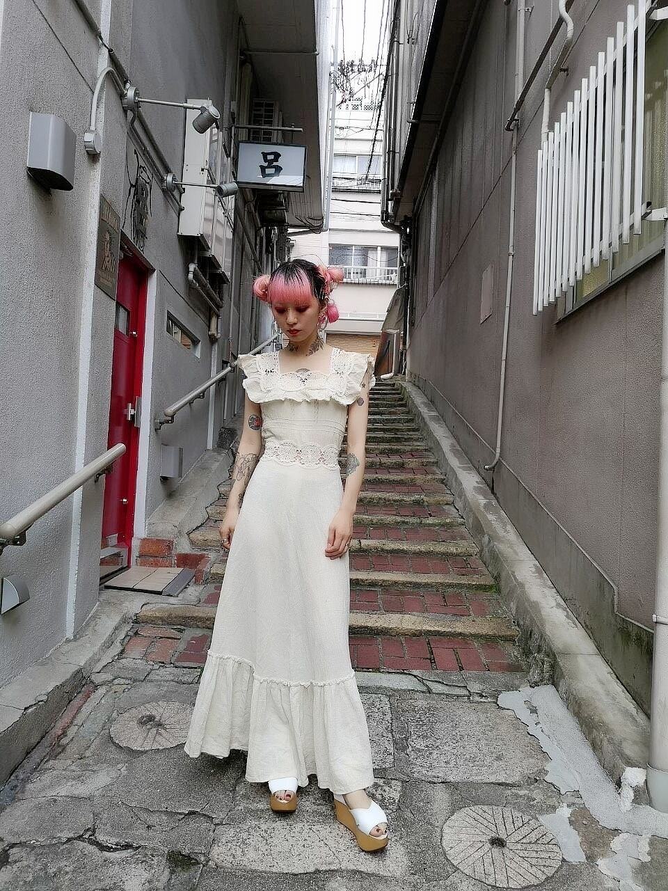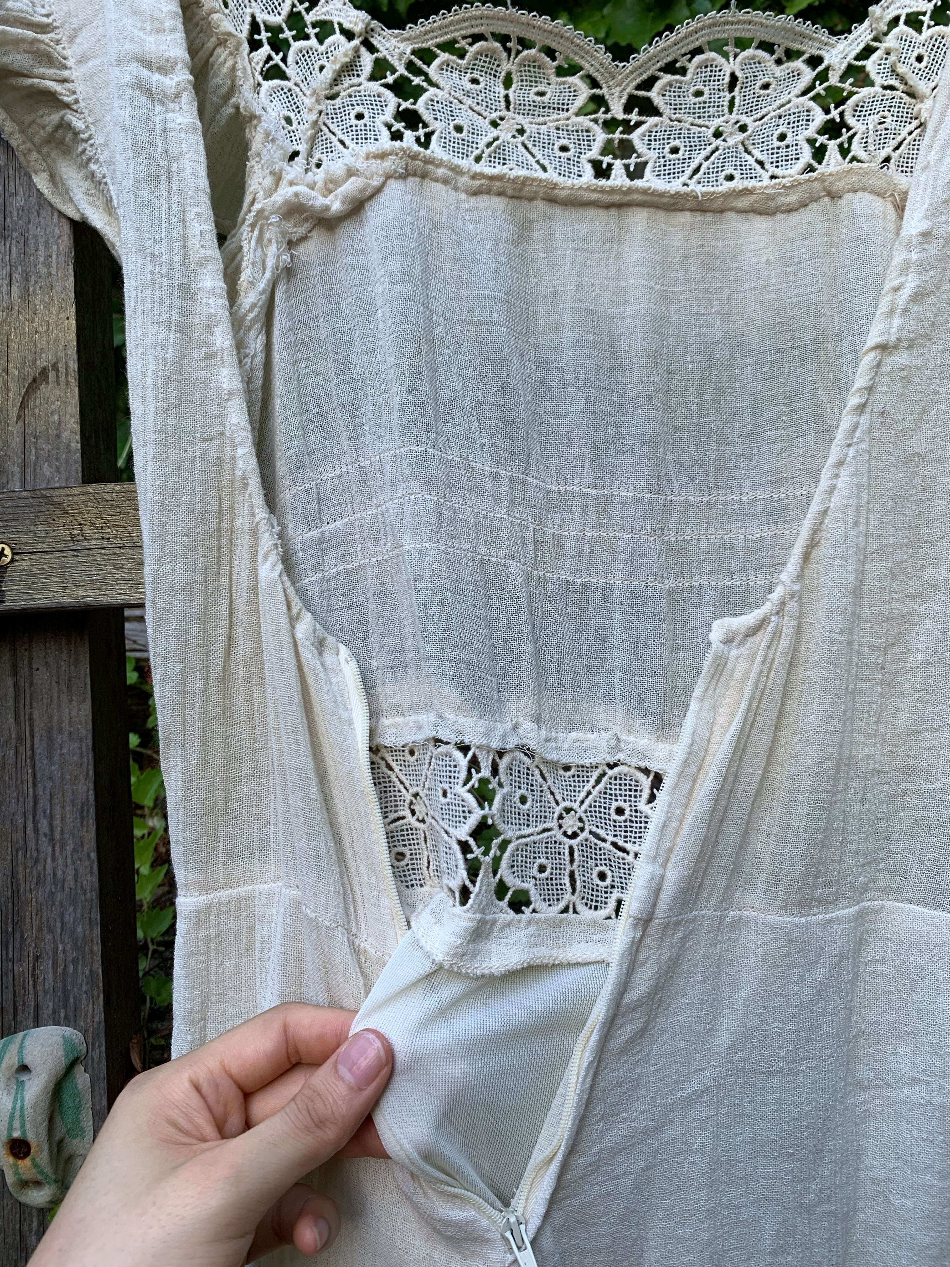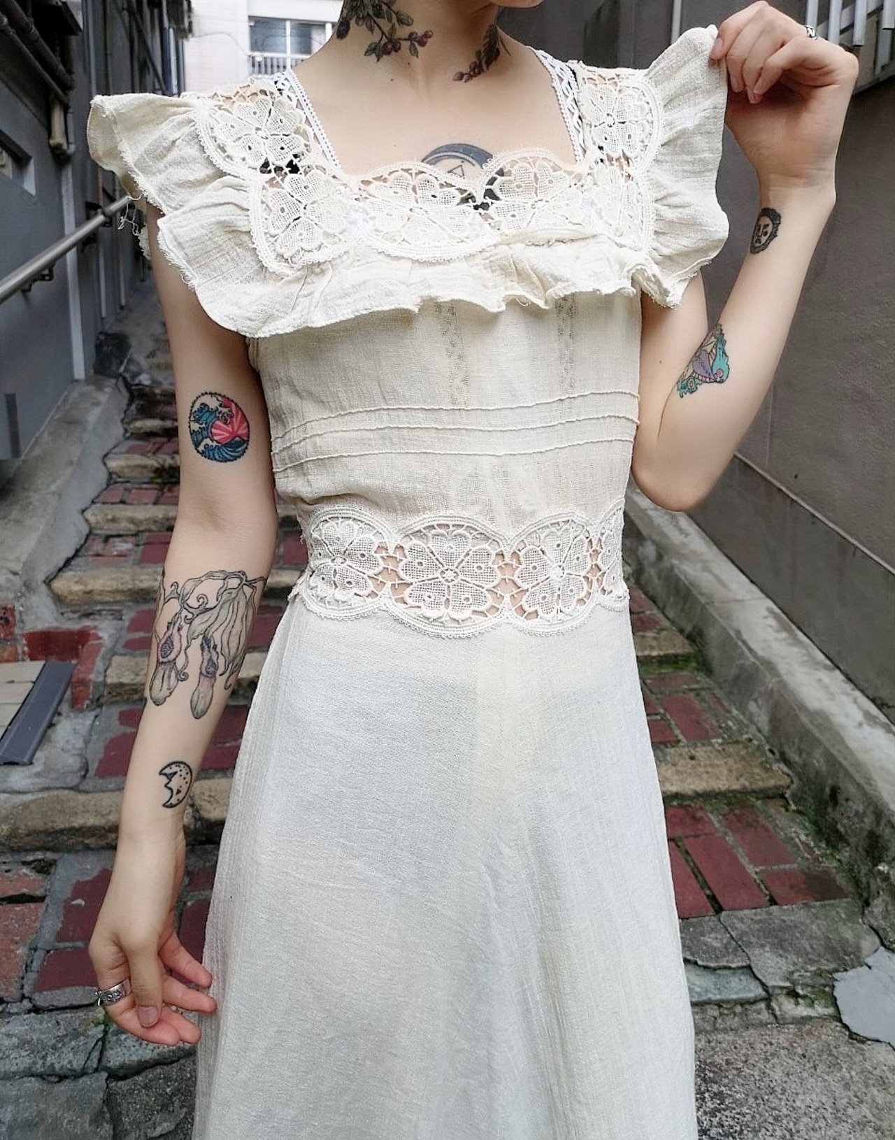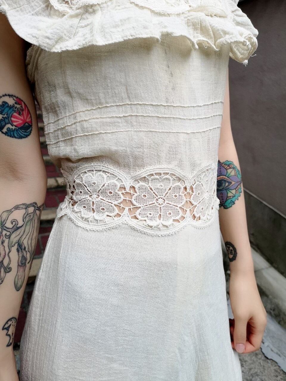 胸元とウエストラインに刺繍レースになっていて肌見せ部分の凝ったデザインが◎