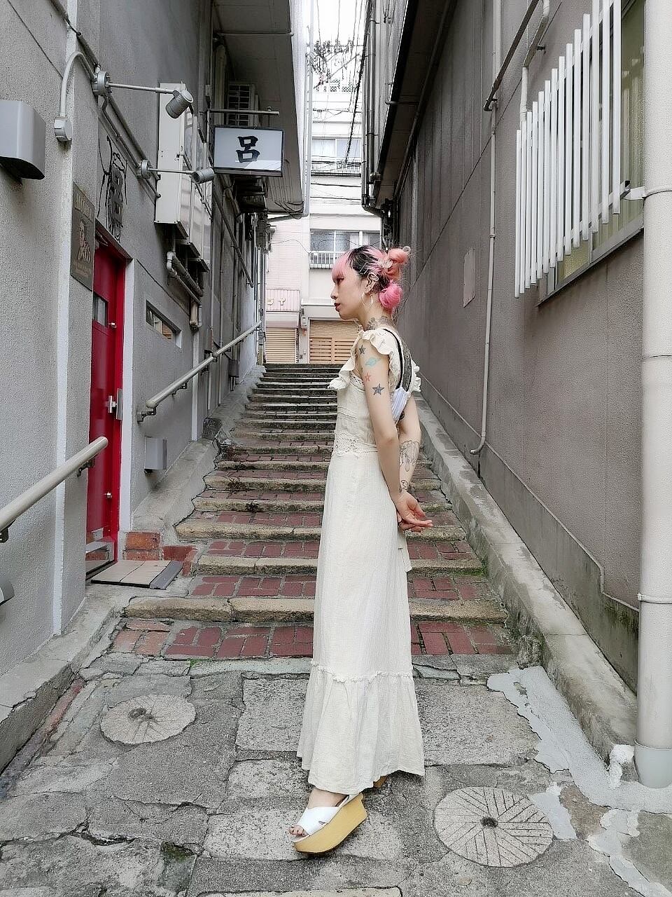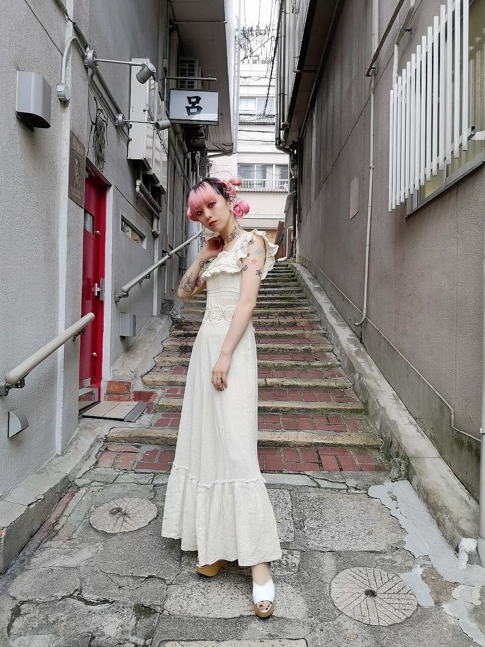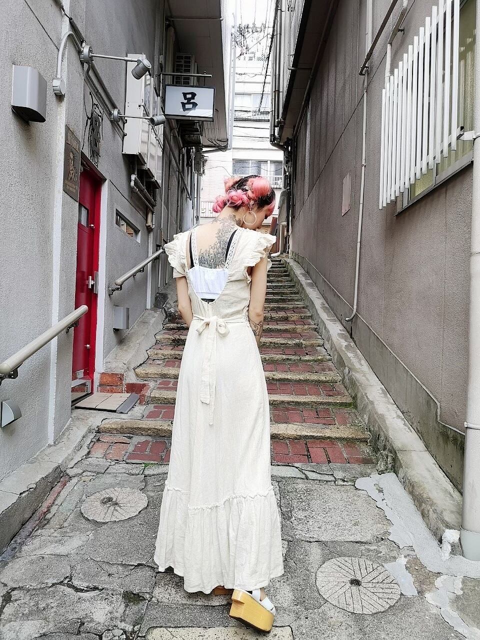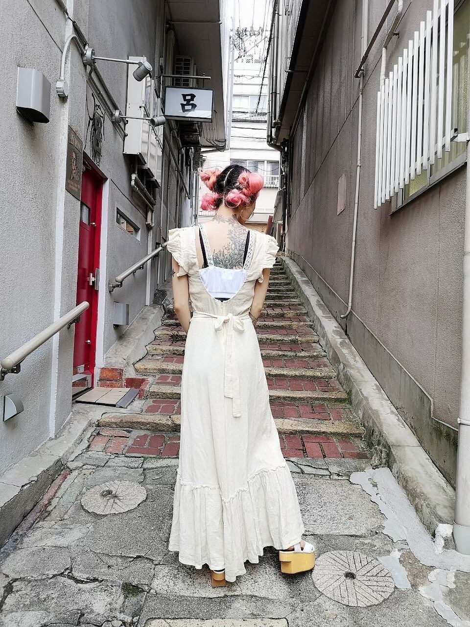 胸元とウエストラインに刺繍レースになっていて肌見せ部分の凝ったデザインが◎