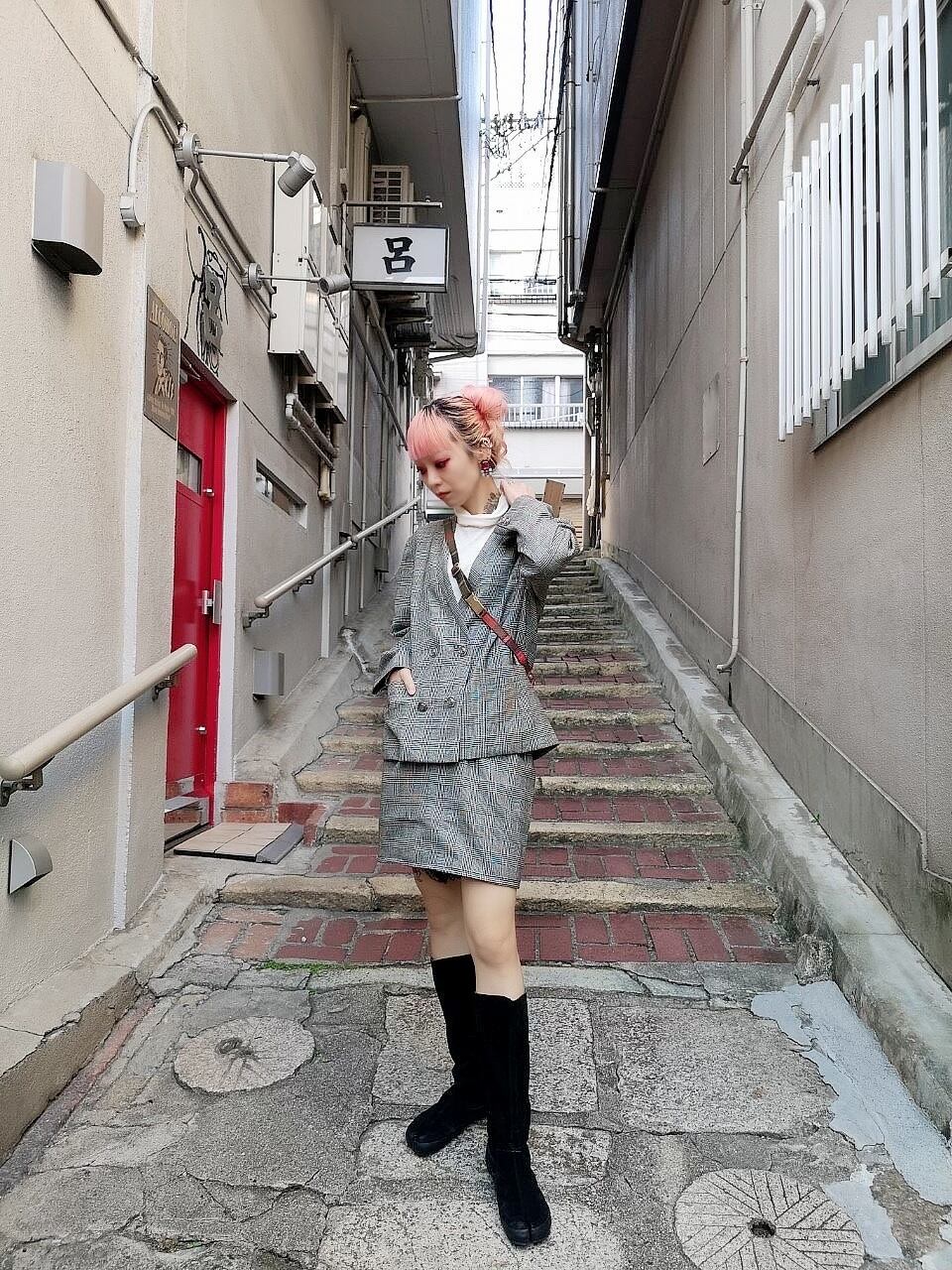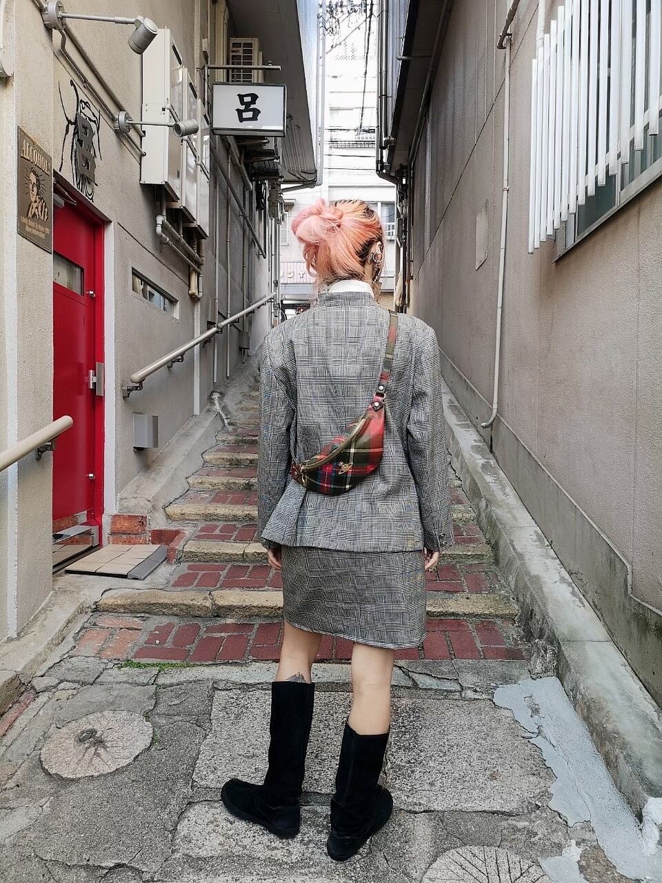よく見ると一つ一つが千鳥柄になってるチェック柄のセットアップ