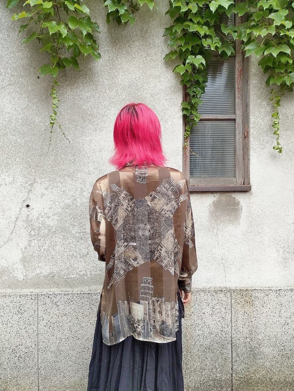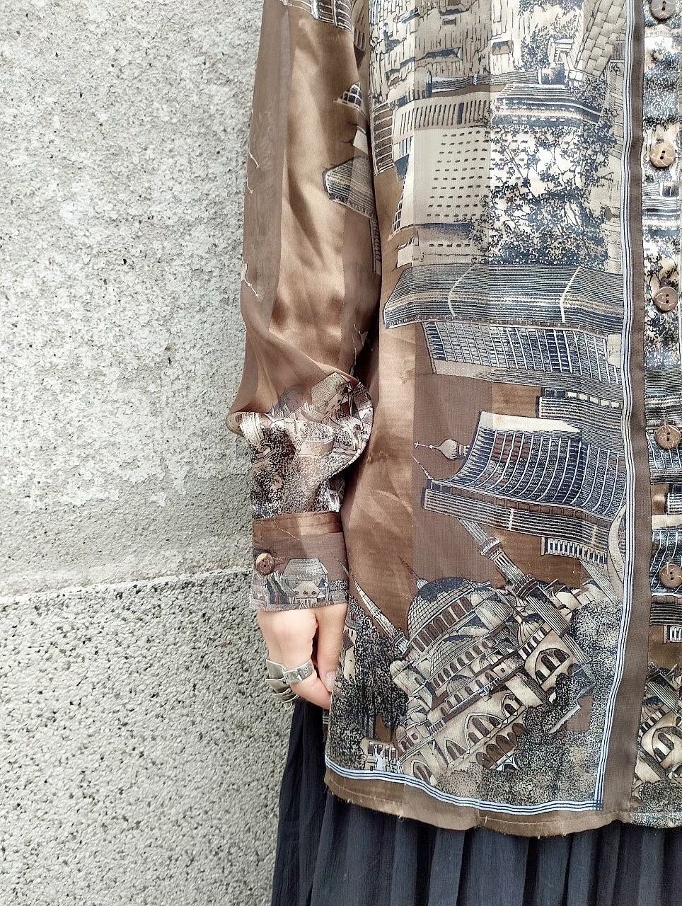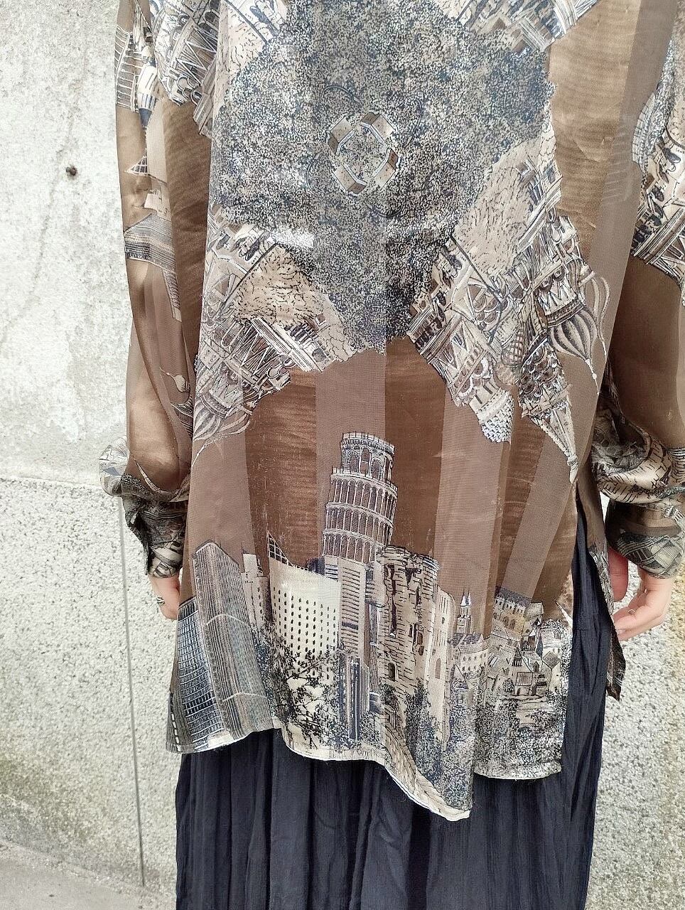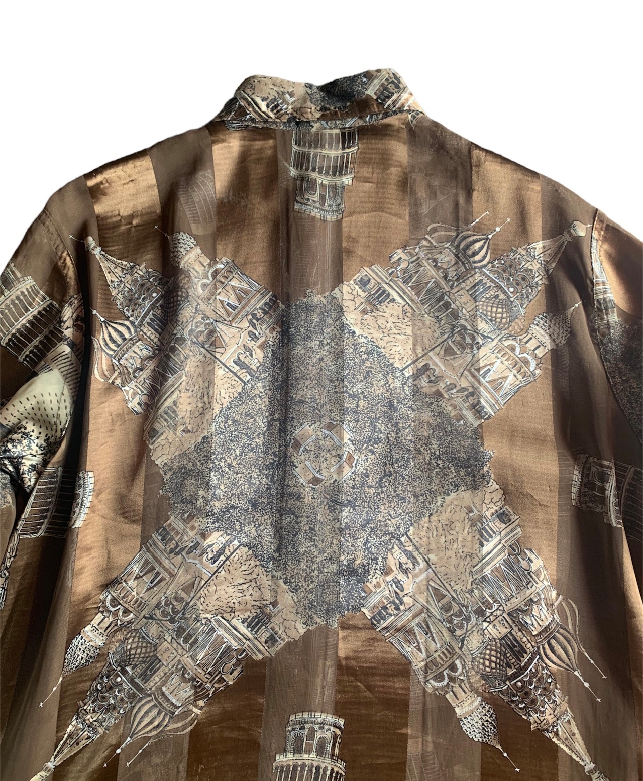 フロントは左右対称に見えて左右対称でも無く、バックは万華鏡の穴から覗いた様な不思議な建物柄