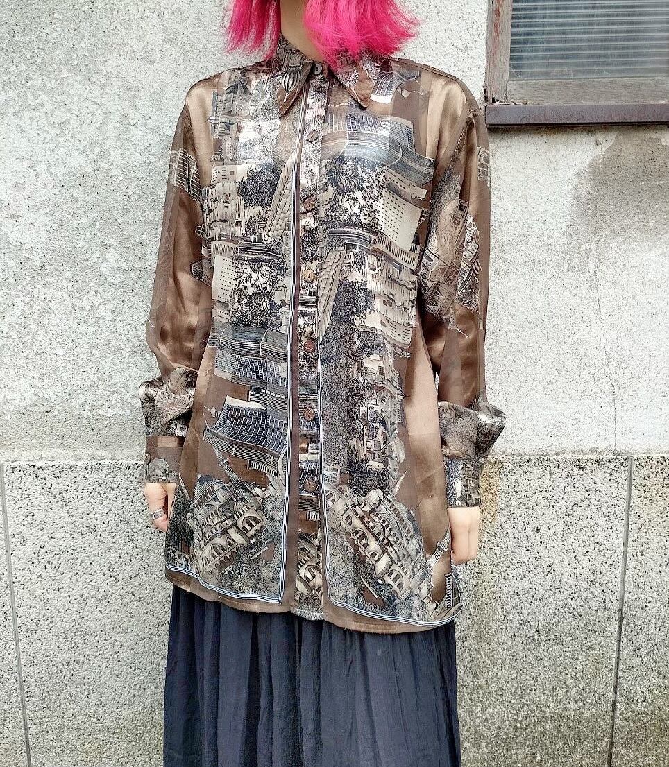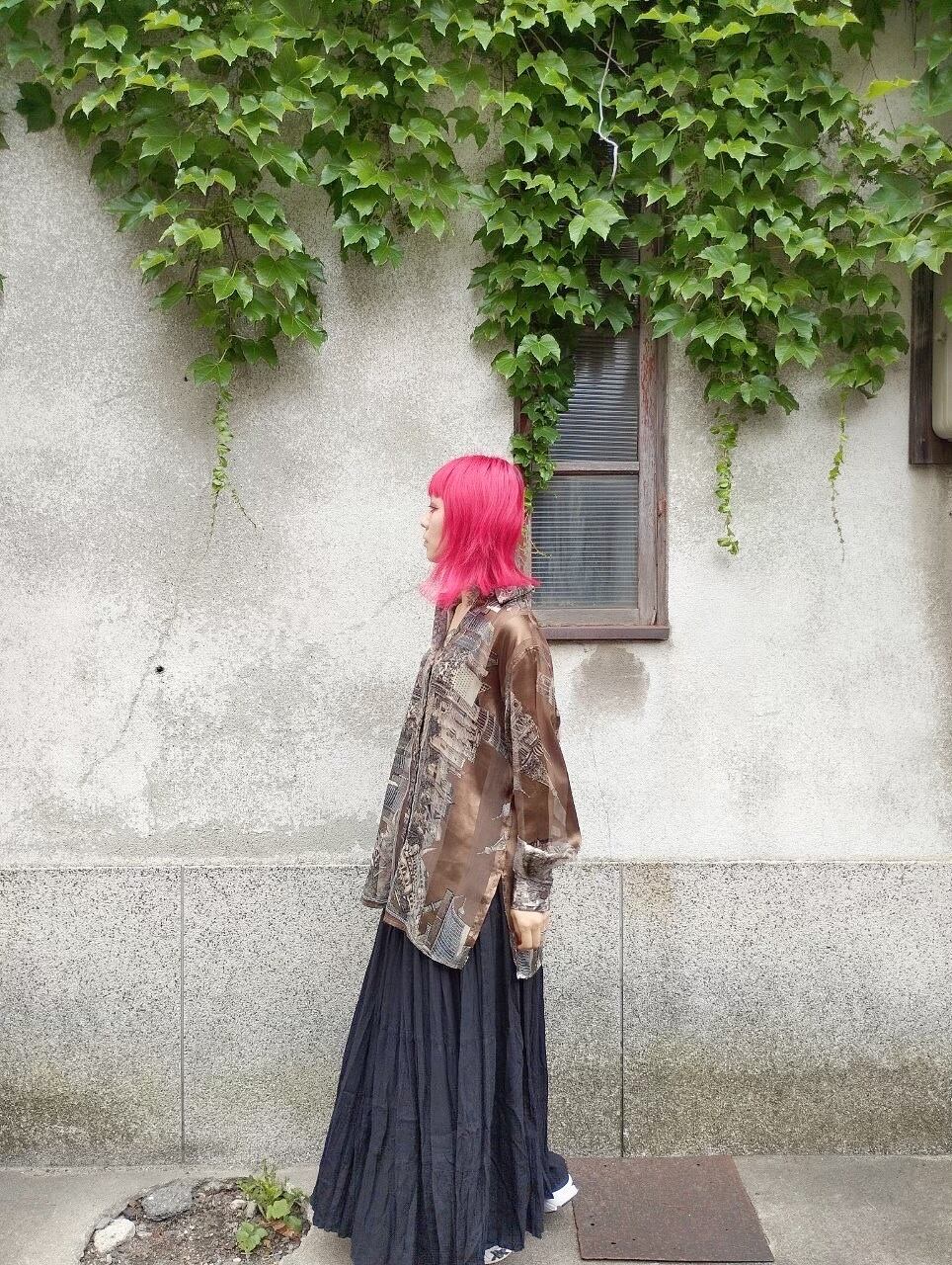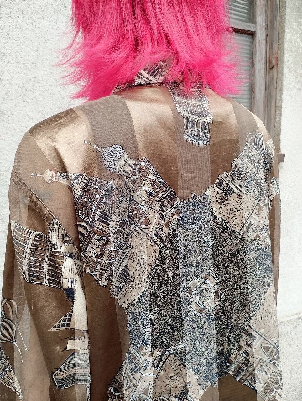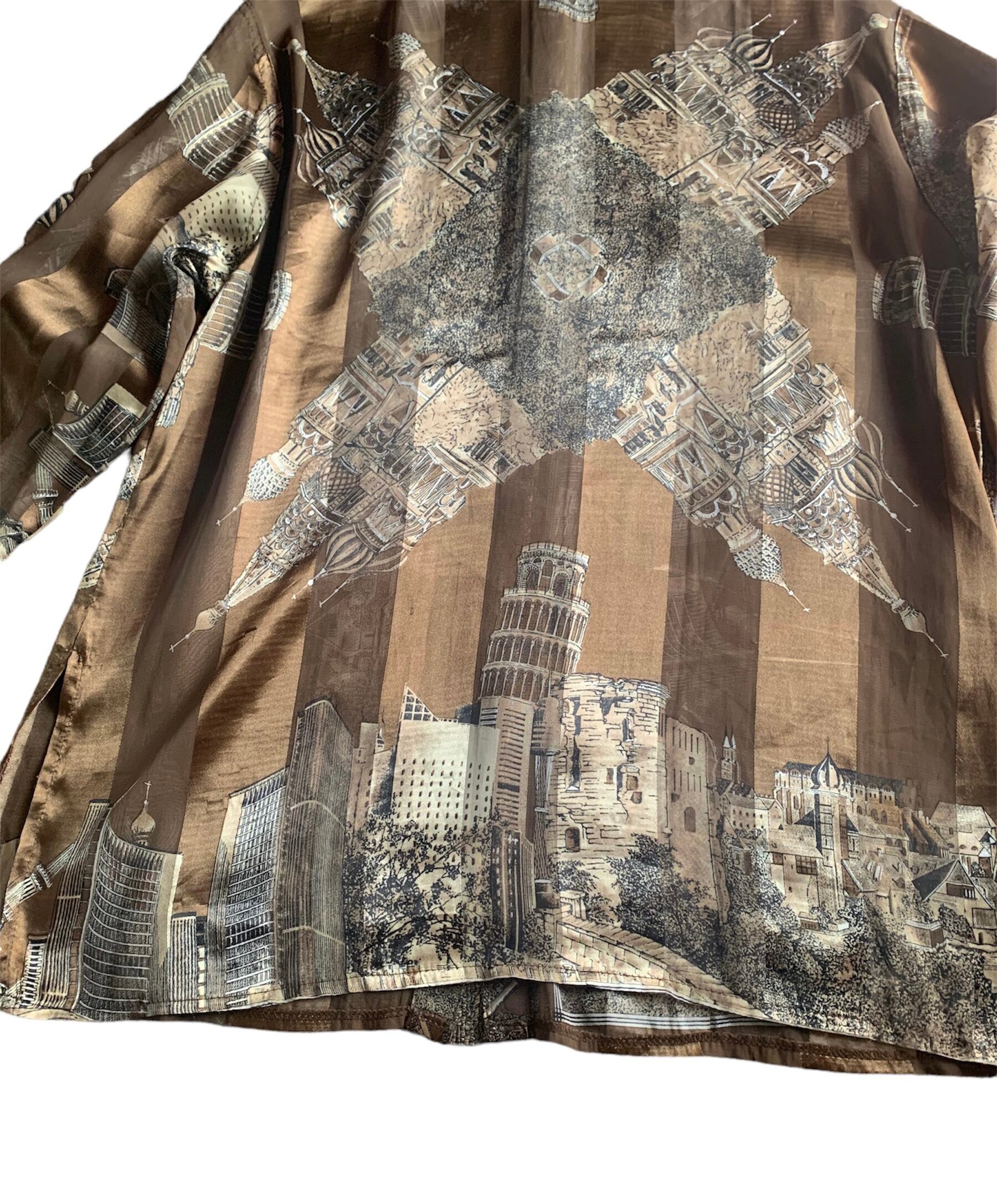 フロントは左右対称に見えて左右対称でも無く、バックは万華鏡の穴から覗いた様な不思議な建物柄