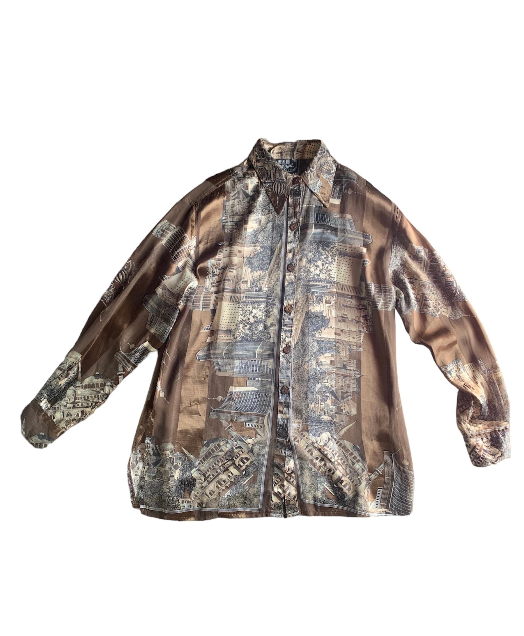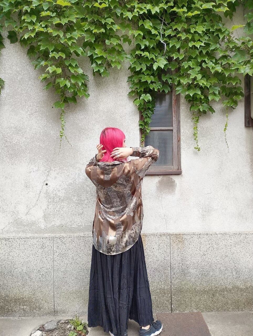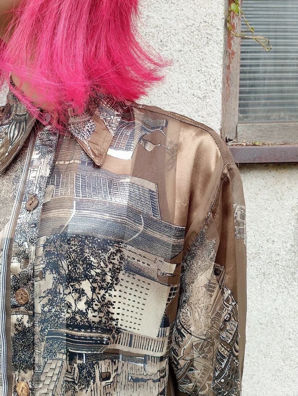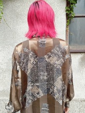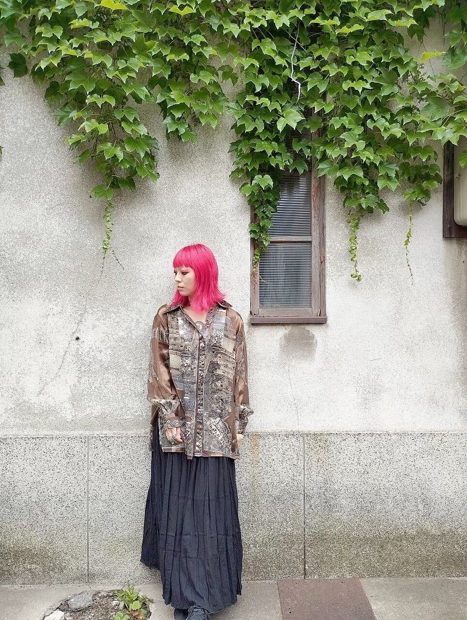 フロントは左右対称に見えて左右対称でも無く、バックは万華鏡の穴から覗いた様な不思議な建物柄